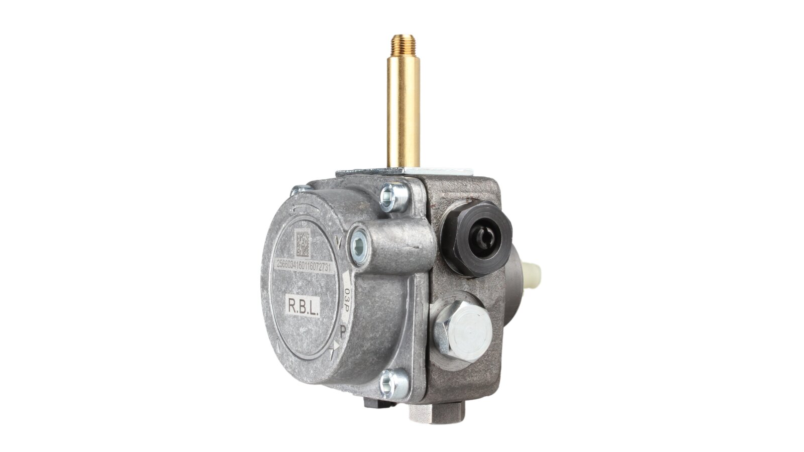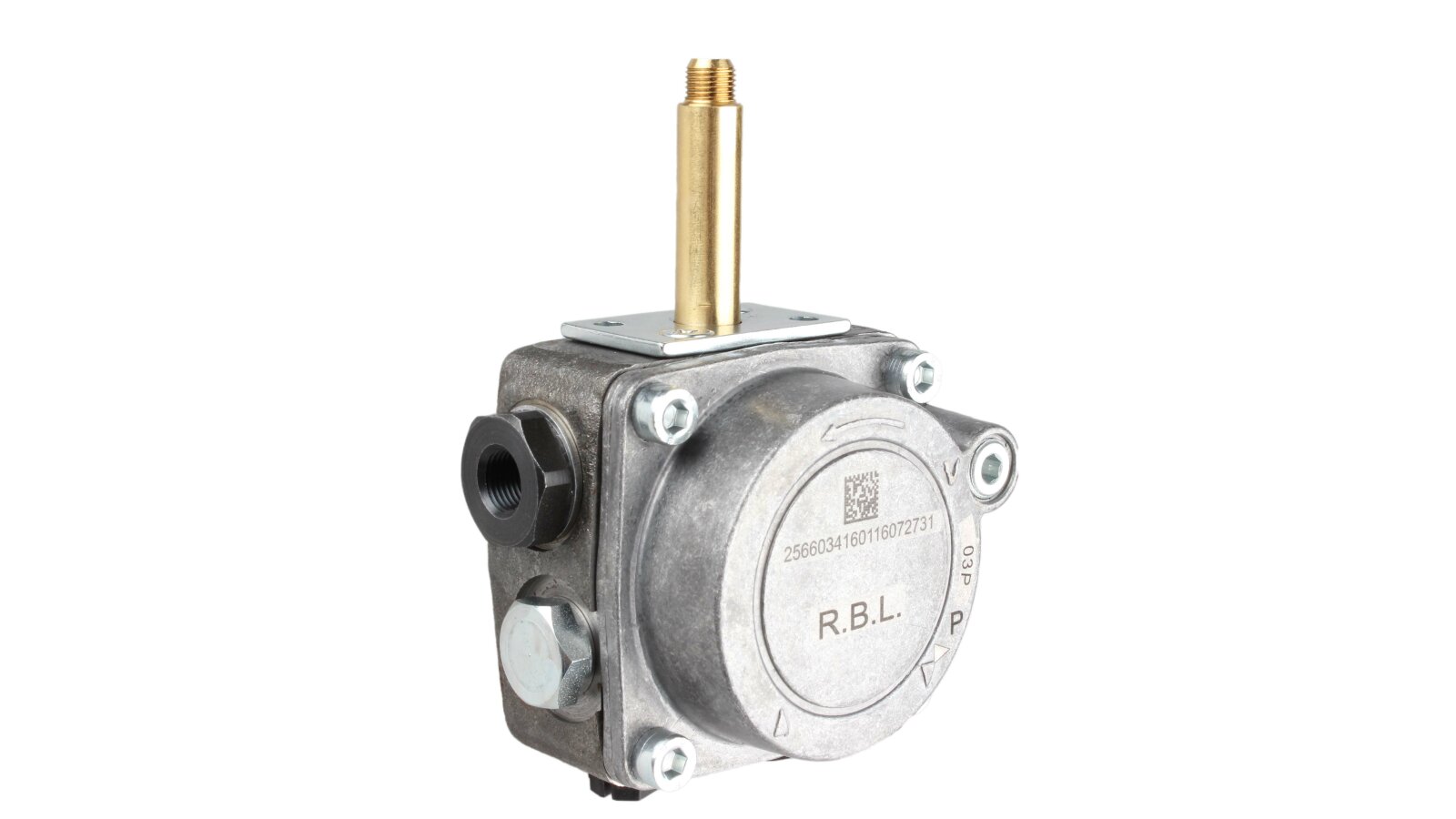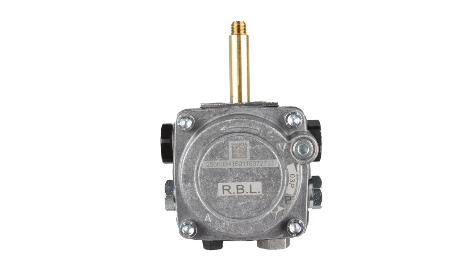 The Riello 2566034 pump is used to pump liquid fuel to the burner under pressure up to 15 bar. It is installed in Riello burner devices.