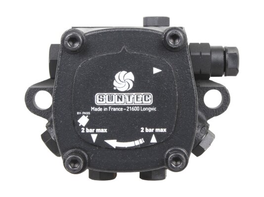 Riello AJ is made of materials resistant to high pressure, contact with fuel, and wear. The main working unit is a pair of gears, which, when moving, suck fuel from the tank and pass it through a filter and a valve that regulates the pressure. A mesh metal filter with 120x150 µm holes prevents the gear pair from jamming. It has a disassemblable design for cleaning from dirt.