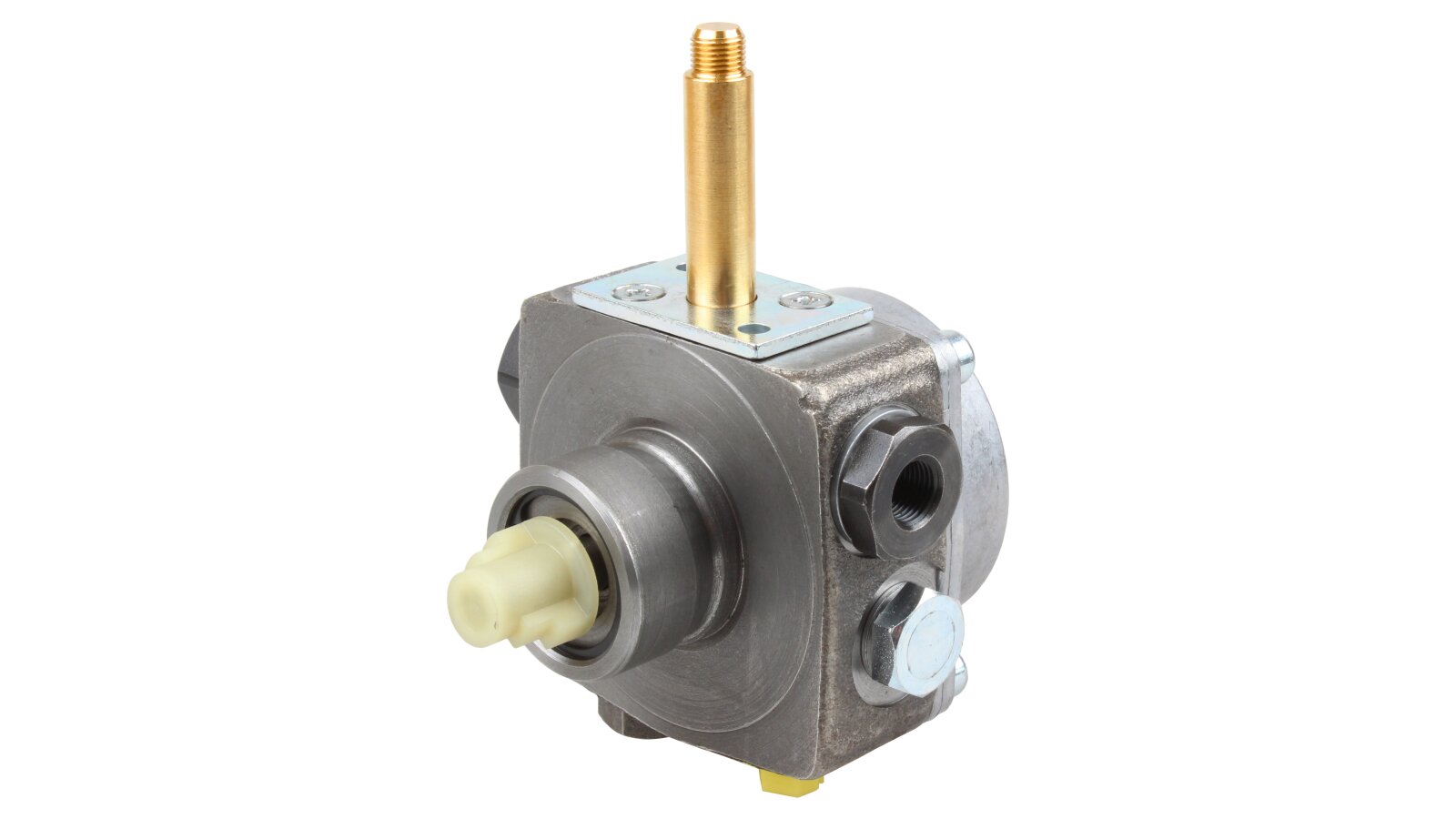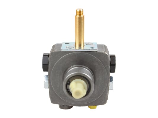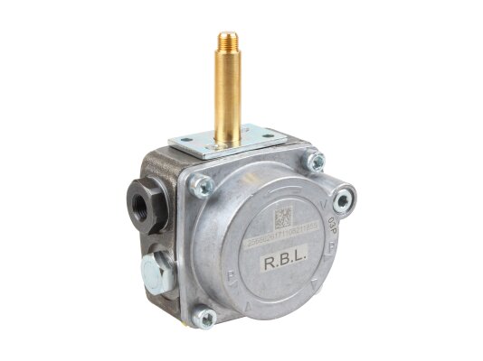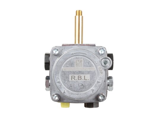 The Riello R.B.L. 2566026 liquid fuel pump pumps up to 15 atmospheres of pressure, which is necessary to supply diesel fuel to the injector. The model is manufactured to complete Riello low-power burners.