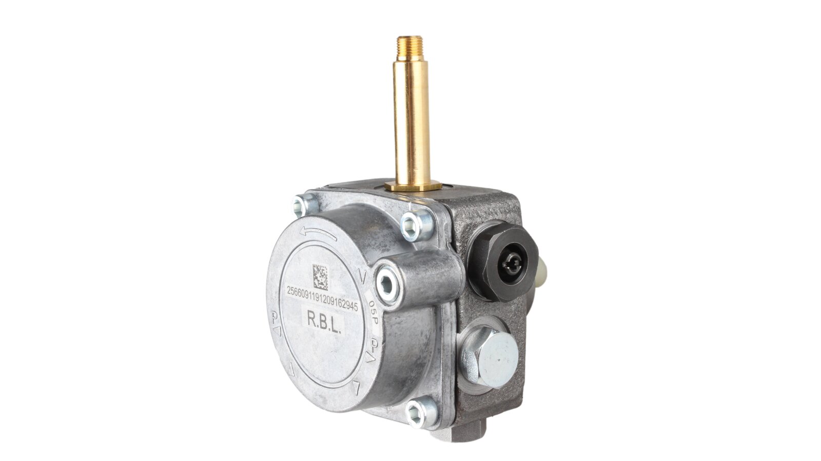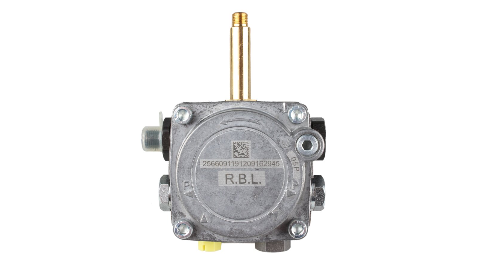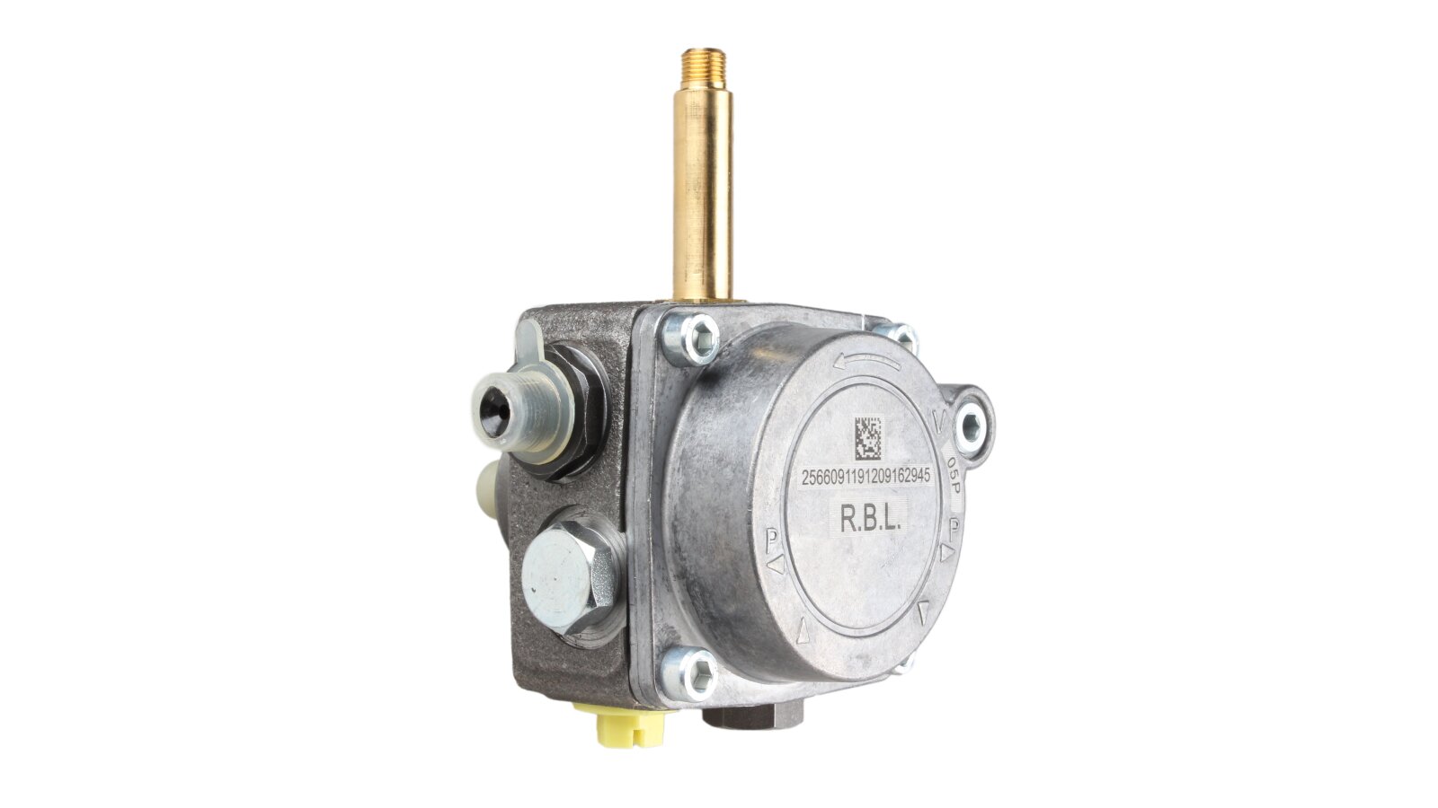 The Riello R.B.L. 2566091 pump is used to pump liquid fuel to the nozzle. It is used for low-power Riello burners. Maximum feed pressure is 15 atmospheres.