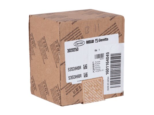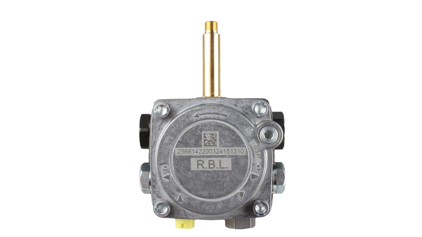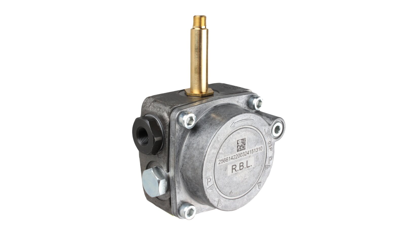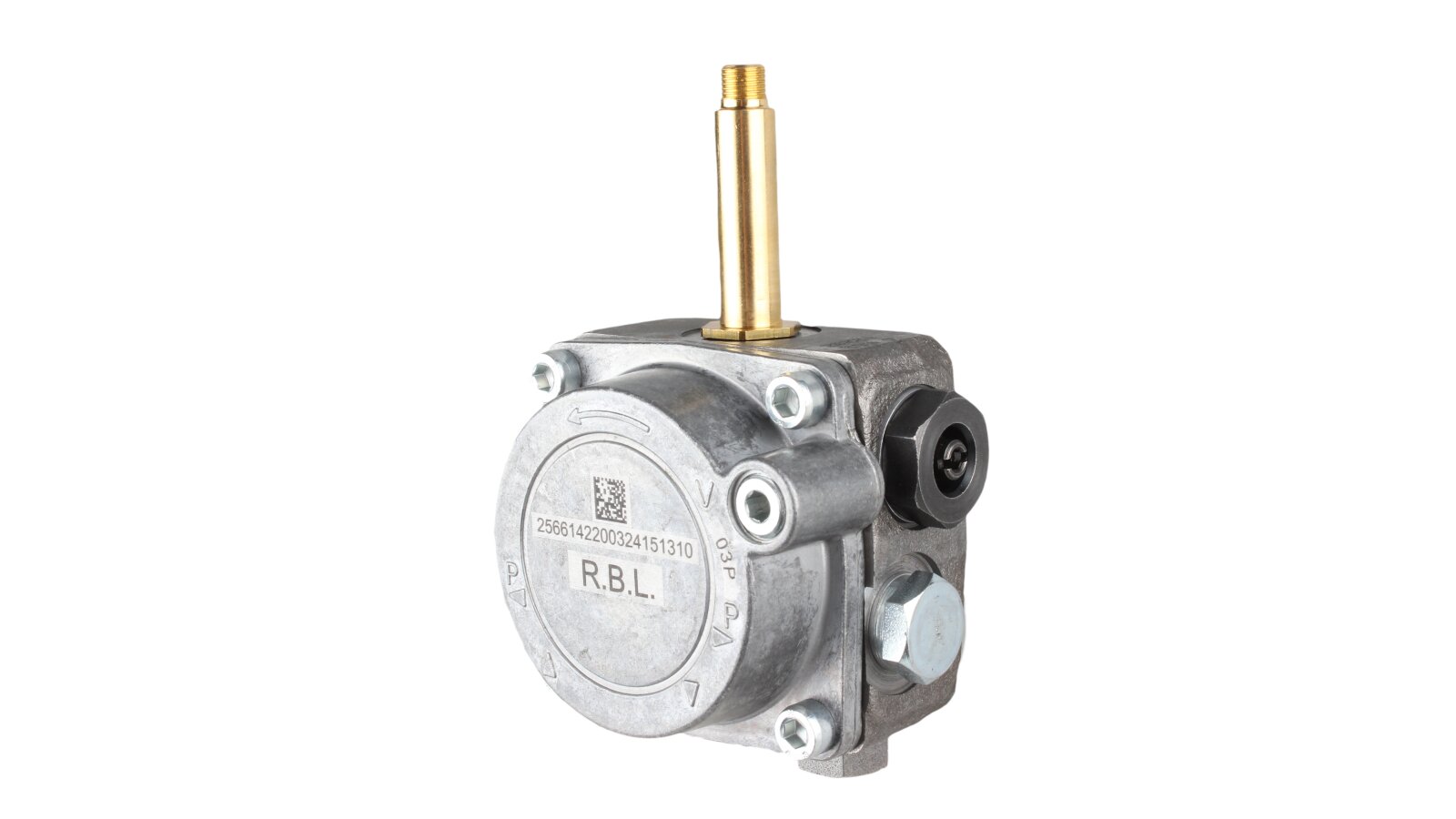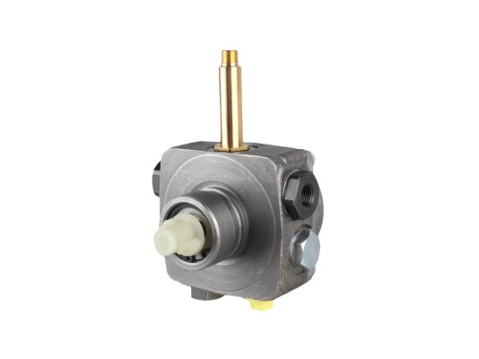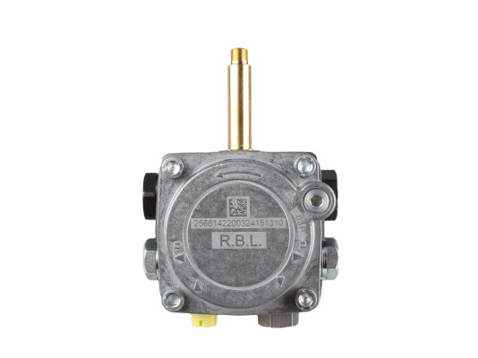 The Riello R.B.L. 2566142 gear pump is used to pump diesel fuel under pressure up to 15 bar. It is installed in Riello low-power burners.