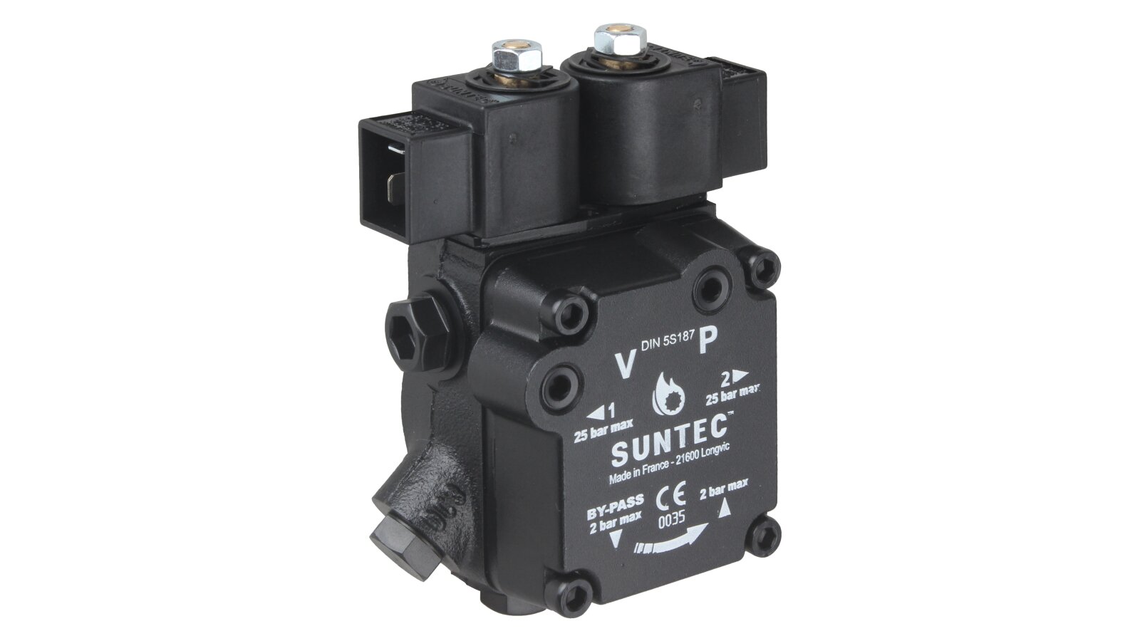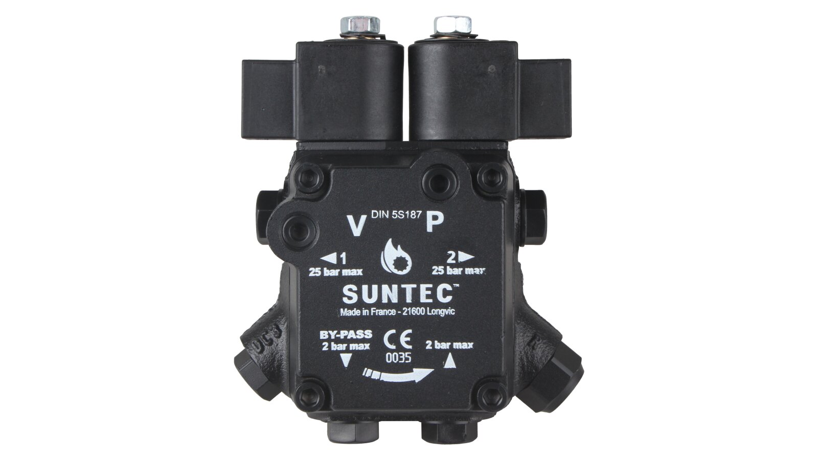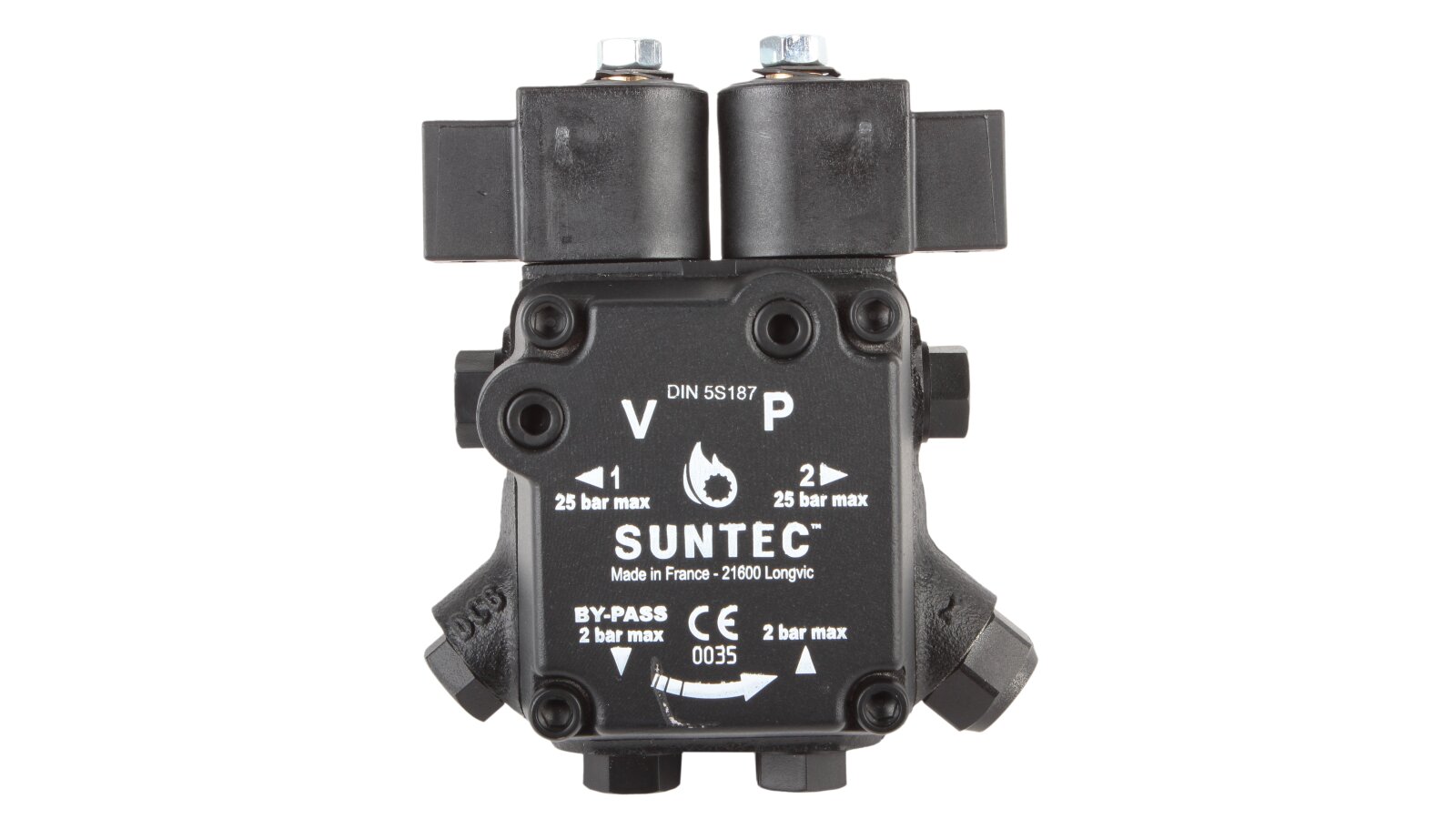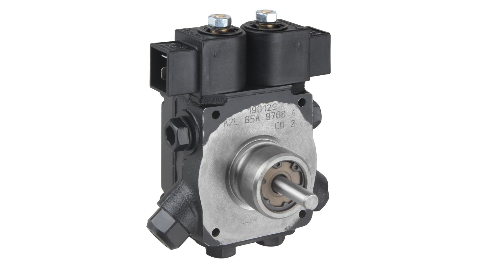 The high-performance gear pump Suntec A2L 65 A 9708 4P with a feed rate of 81 l/h is presented by the French concern. It is designed to pump diesel fuel simultaneously to two nozzle lines of burners. The unit is equipped with a pair of electromagnetic solenoids responsible for stopping the supply according to the set operating mode, as well as an adjustable slide valve. We offer to buy pumps for burners from the European manufacturer Suntec in the online store of the company "ANKAS".