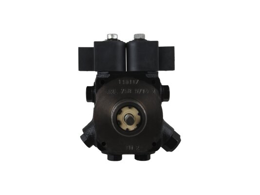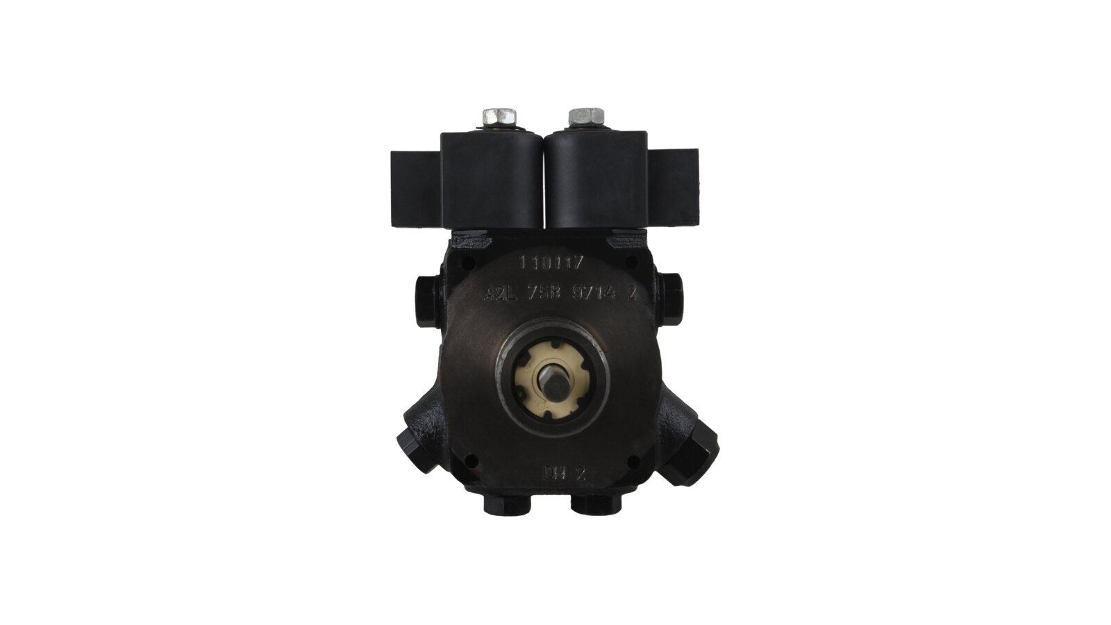 The role of controls is performed by two electromagnetic solenoids of the "normally closed" type and a spool valve. The presence of shut-off valves makes it possible to instantly stop the supply of working fluid by a signal from the control unit, regardless of the rotation speed of the drive shaft.