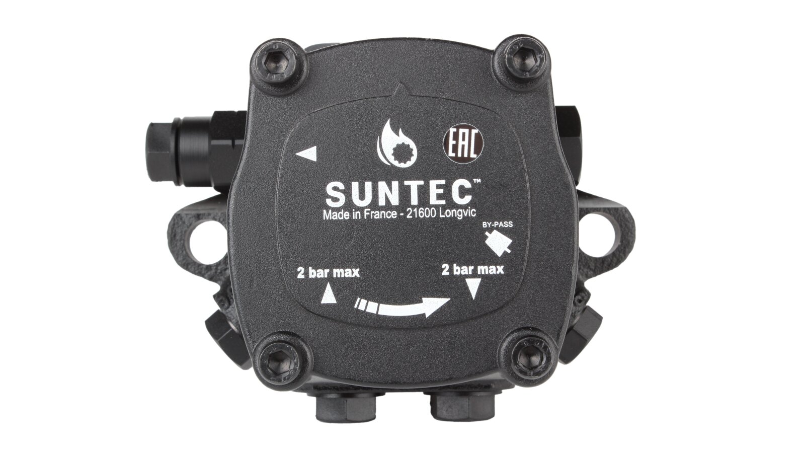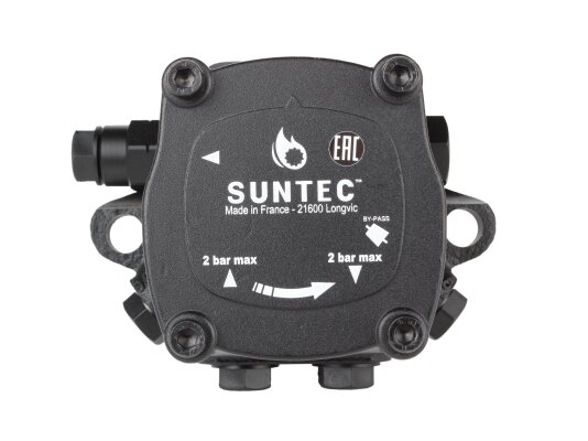 The Suntec AJ 4 AC 1000 4P fuel pump has a right-hand outlet to the nozzle, which is important to consider when selecting equipment.