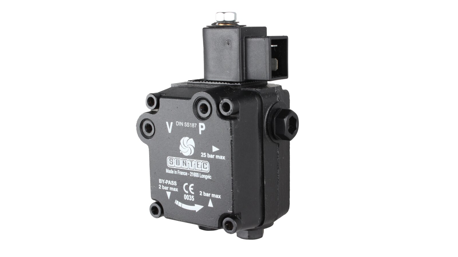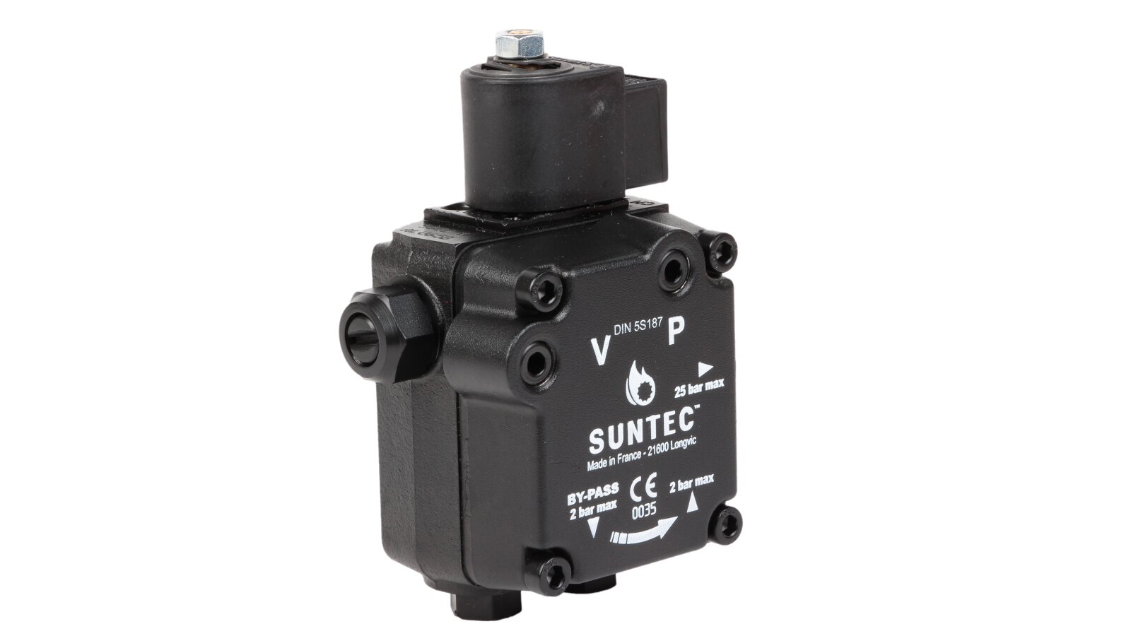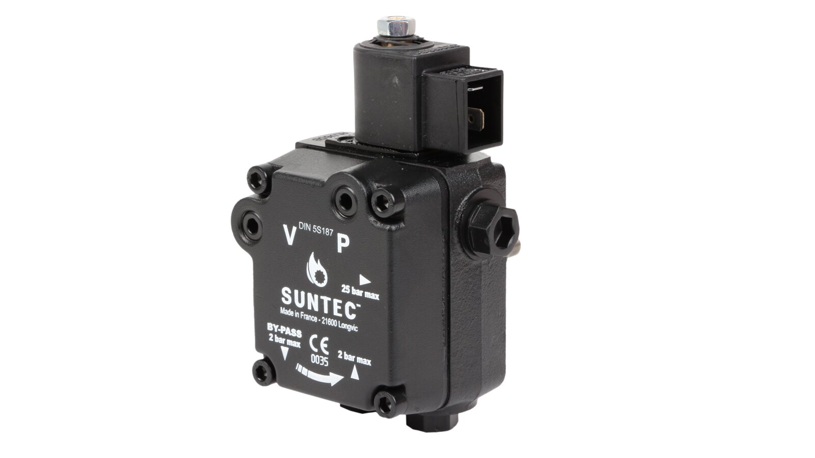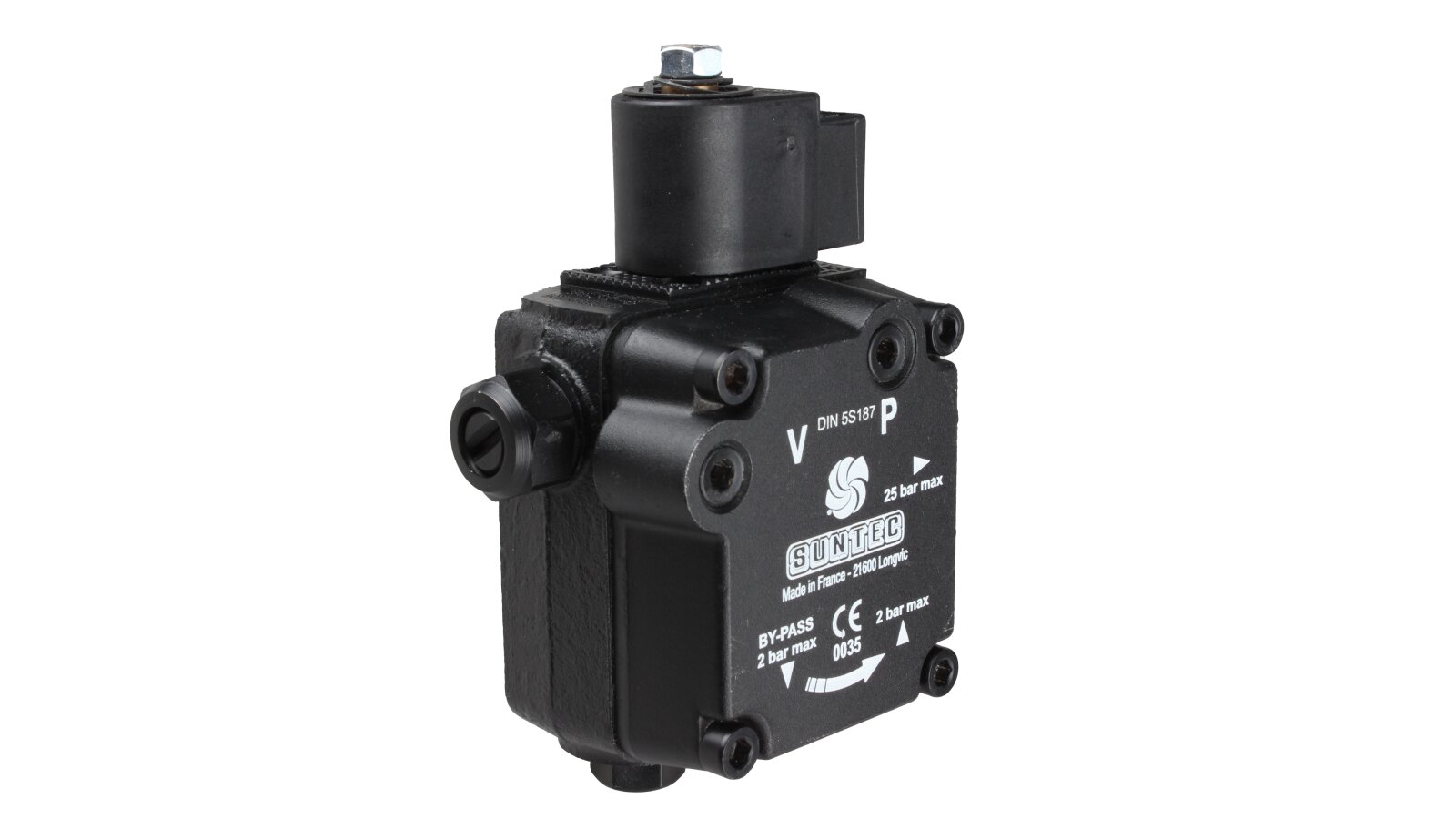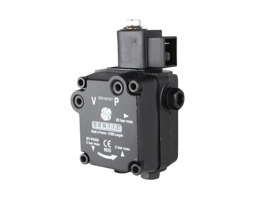 The single-stage pump AL V 65 B 9632 6P 0700 with a capacity of 81 l/h is a modern reliable device designed to equip diesel burners. It was developed by the top European manufacturer SANTEC (France), engaged in the production of equipment for heating systems. This modification differs from others by the presence of an electromagnetic shut-off valve. Among the advantages of the device are increased reliability and an increased service life. The model is compatible with liquid fuel burners from the manufacturers Elko, Baltur and Lamborghini.