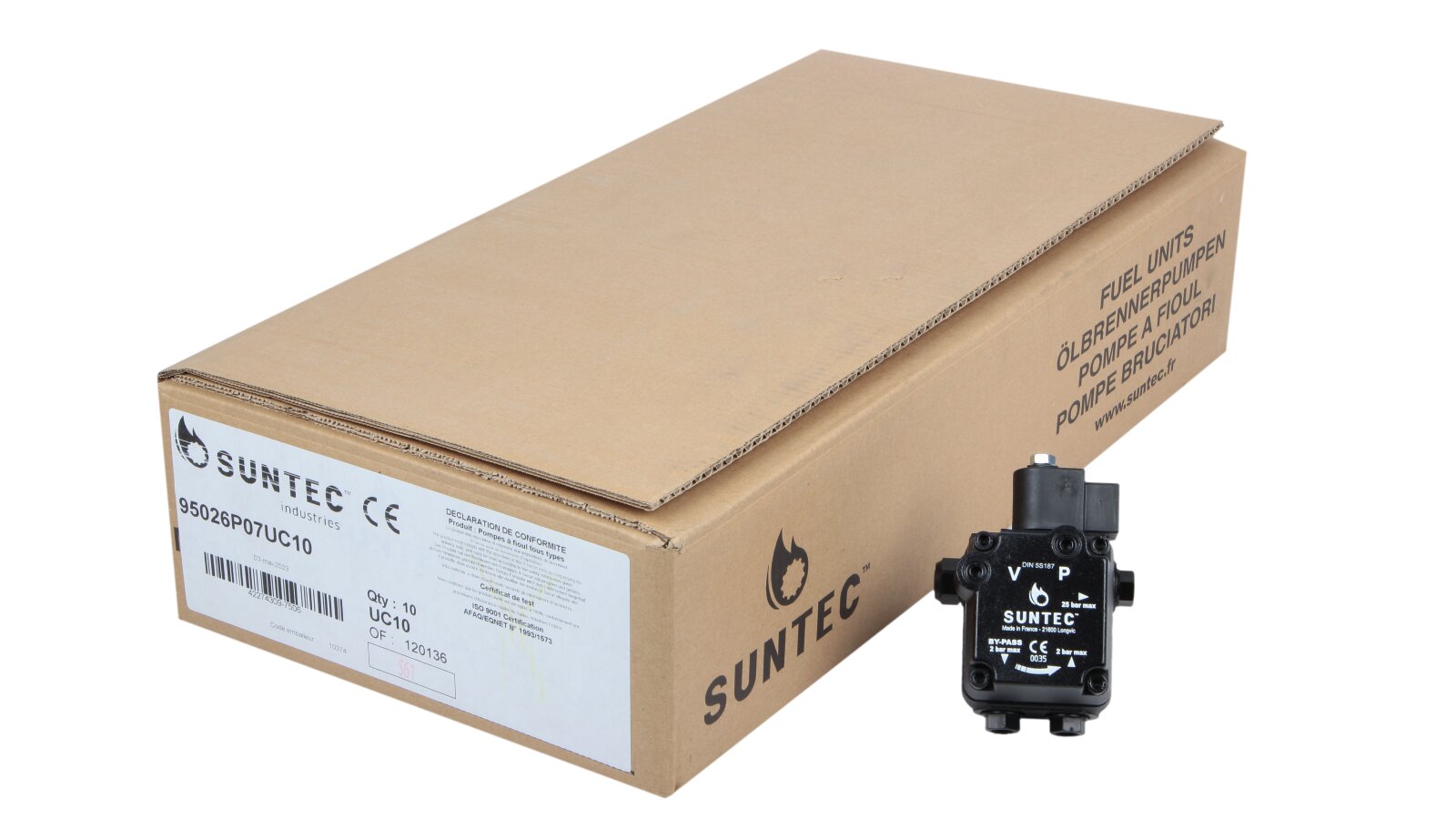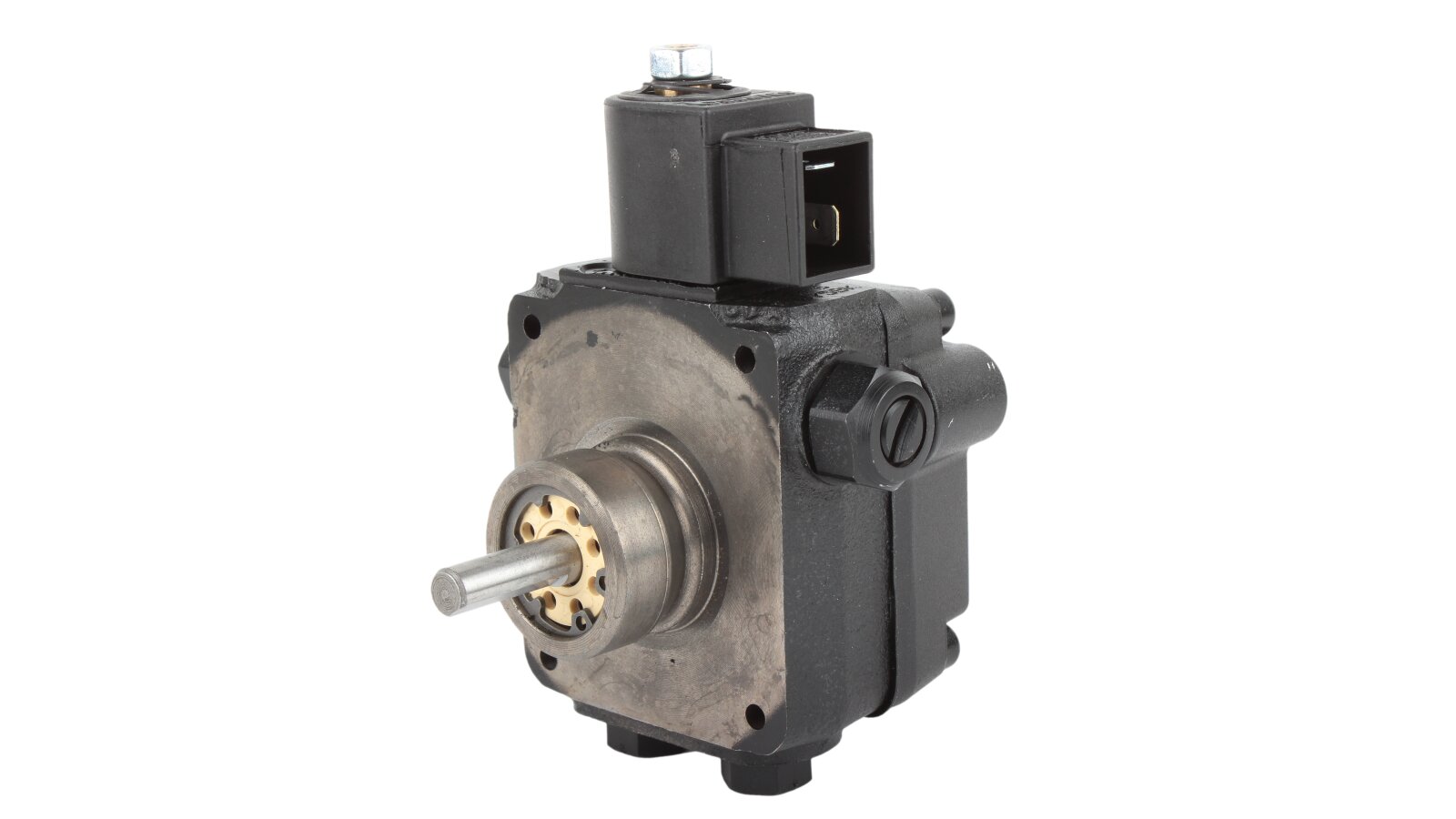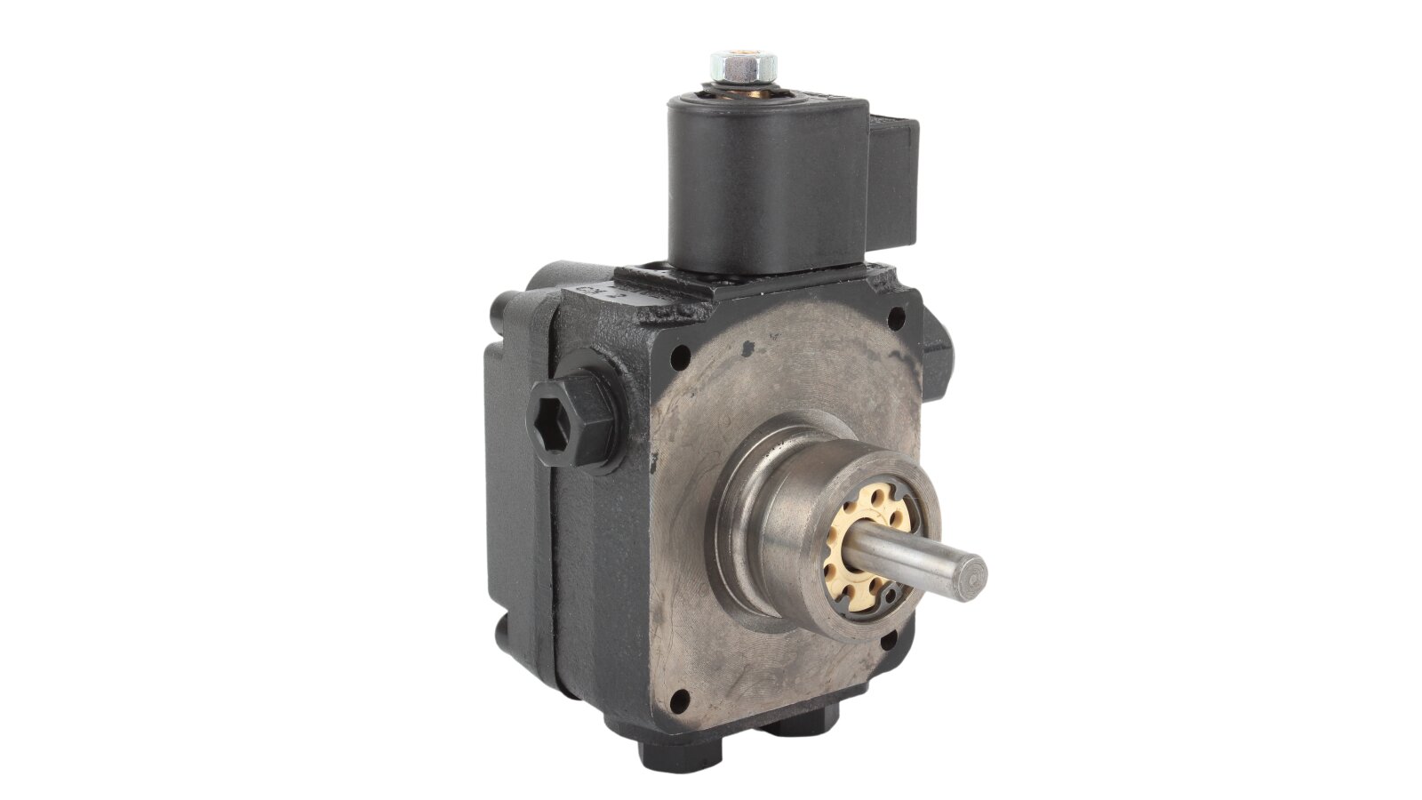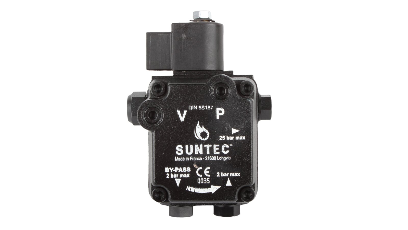 The Suntec AL V 75 B K 9502 5P 0700 pump is installed in burners consuming diesel fuel and kerosene. The design includes a blocking electromagnetic valve with a shut-off function.