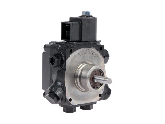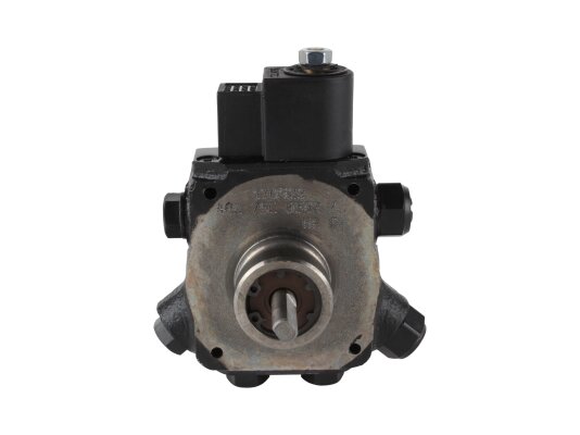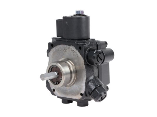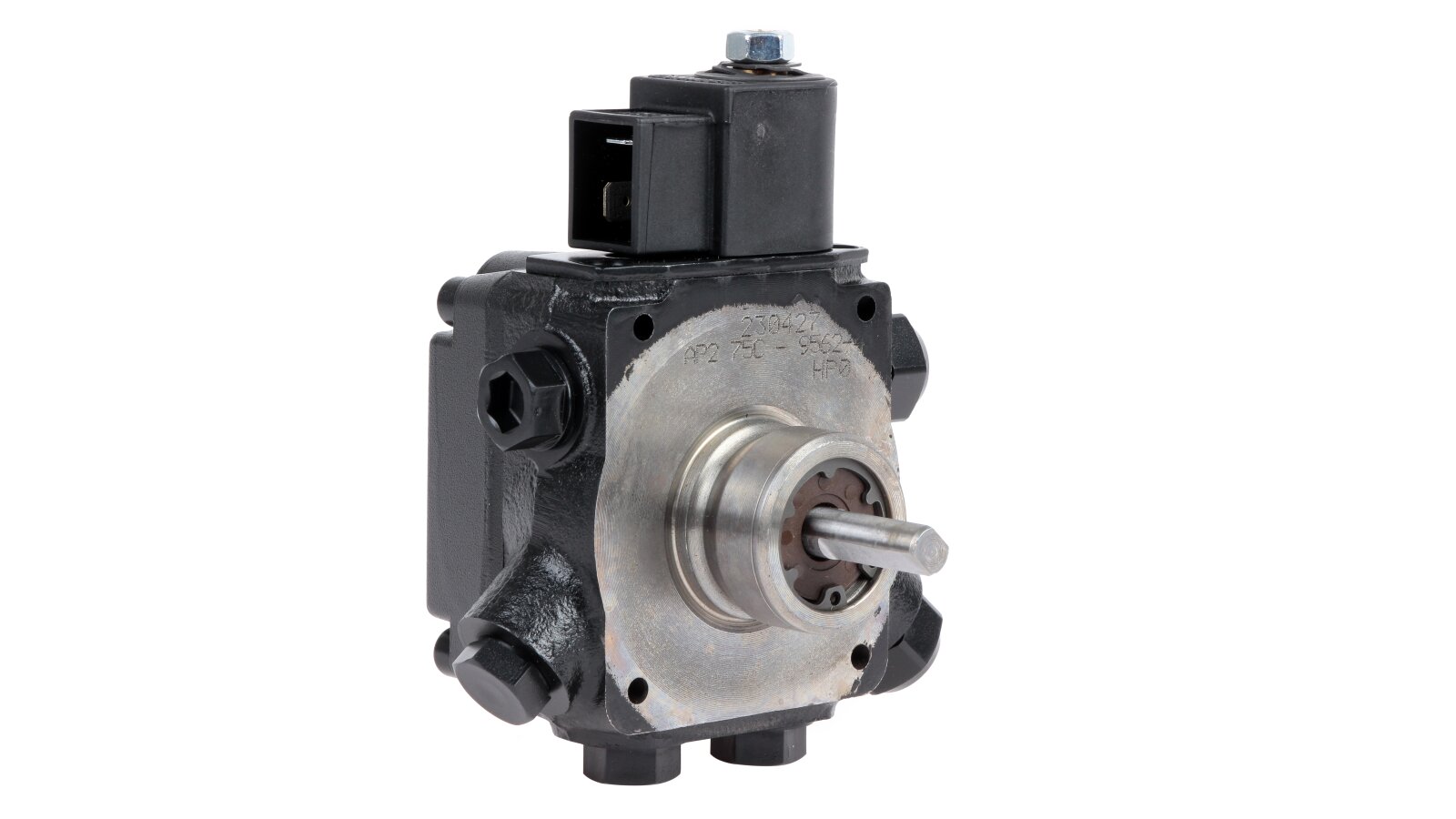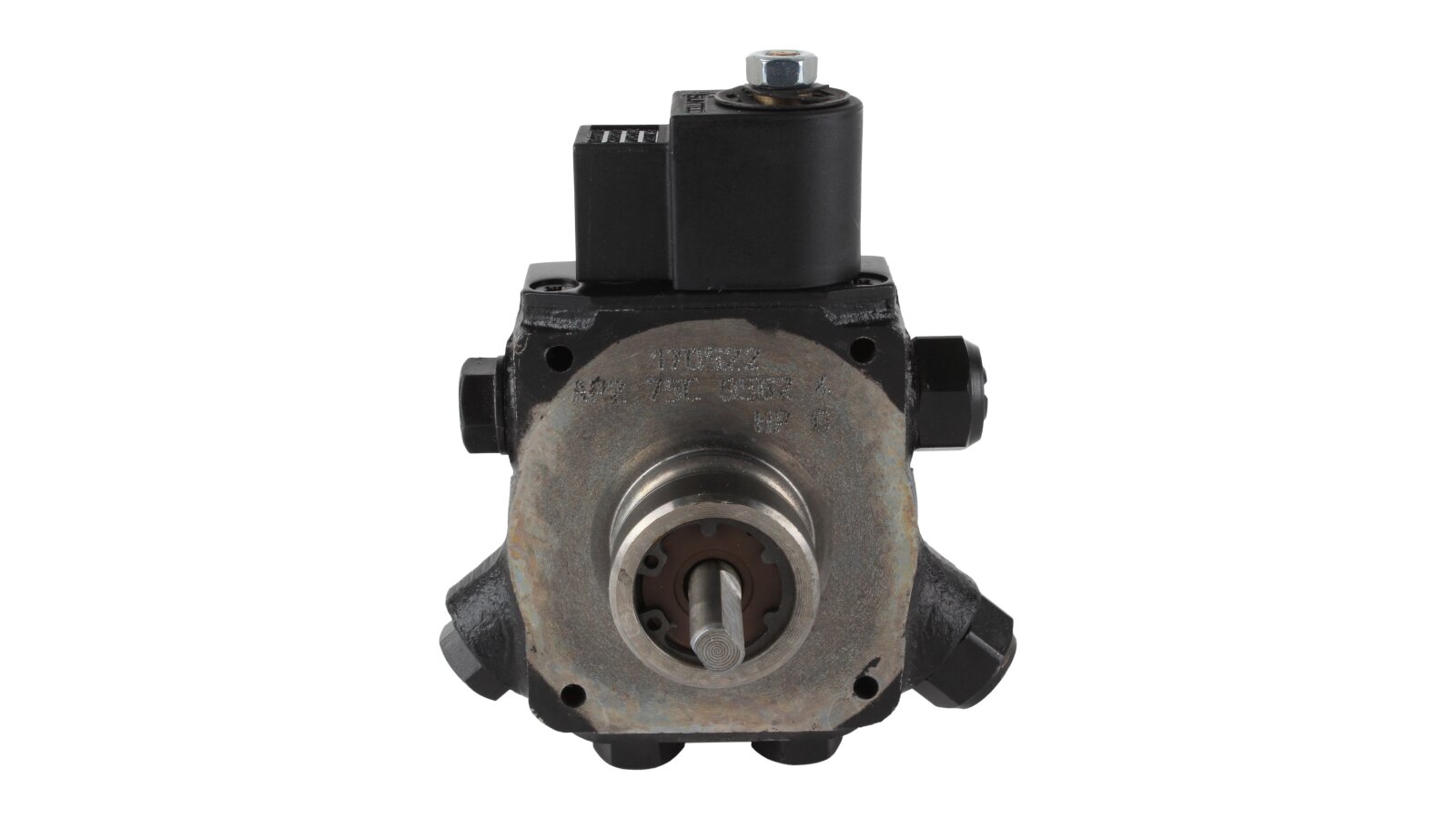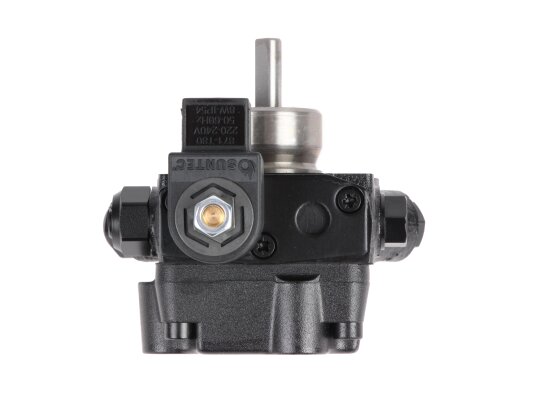 The diesel pump for the Suntec AP2 75 C 9562 4P 0700 burner has two pressure modes. There is no locking function. The flow is cut off by a separate electromagnetic valve. The built-in electromagnetic valve is used to switch between pressure modes. The advantages are optimal performance with small dimensions, reliable electrical protection, a preliminary filter for cleaning the flow, a standard fit, and a durable design.