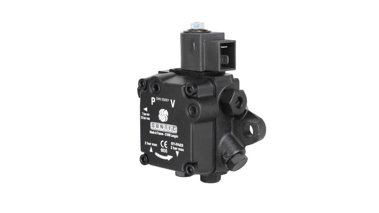 The Suntec gear pump model for burners AS 47 A 7432 4P 0700 differs from other representatives of the AS series by a more reliable installation method. It has a mating flange with a diameter of 54 mm. Otherwise, it is the same single-stage liquid fuel pump with a shut-off electromagnetic valve of the "normally open" type. The size "47" in the code means that it belongs to the low-power energy-efficient devices of the line.