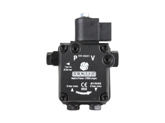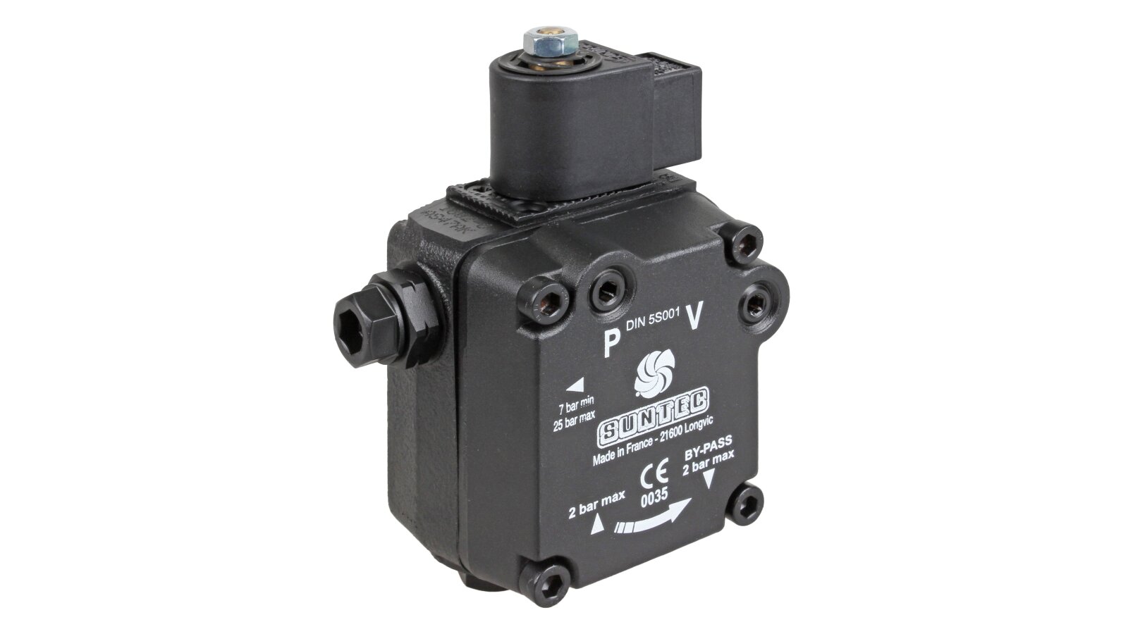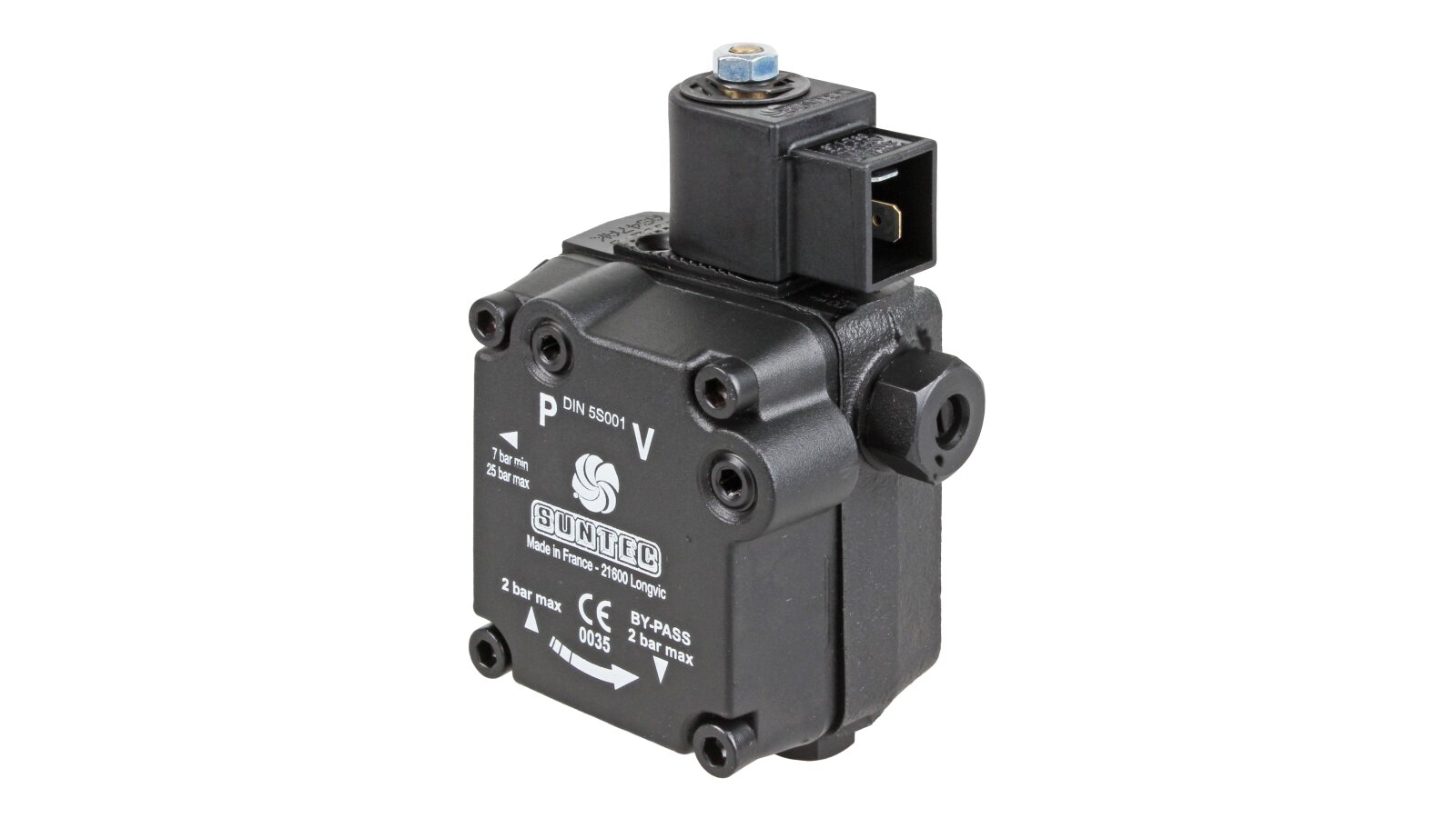 Like other models of Suntec fuel pumps for burners, this device has a gear mechanism. It performs the work of sucking and pumping fuel from the tank to the nozzle line. Two gears in mutual engagement are driven by the drive shaft of the electric motor.