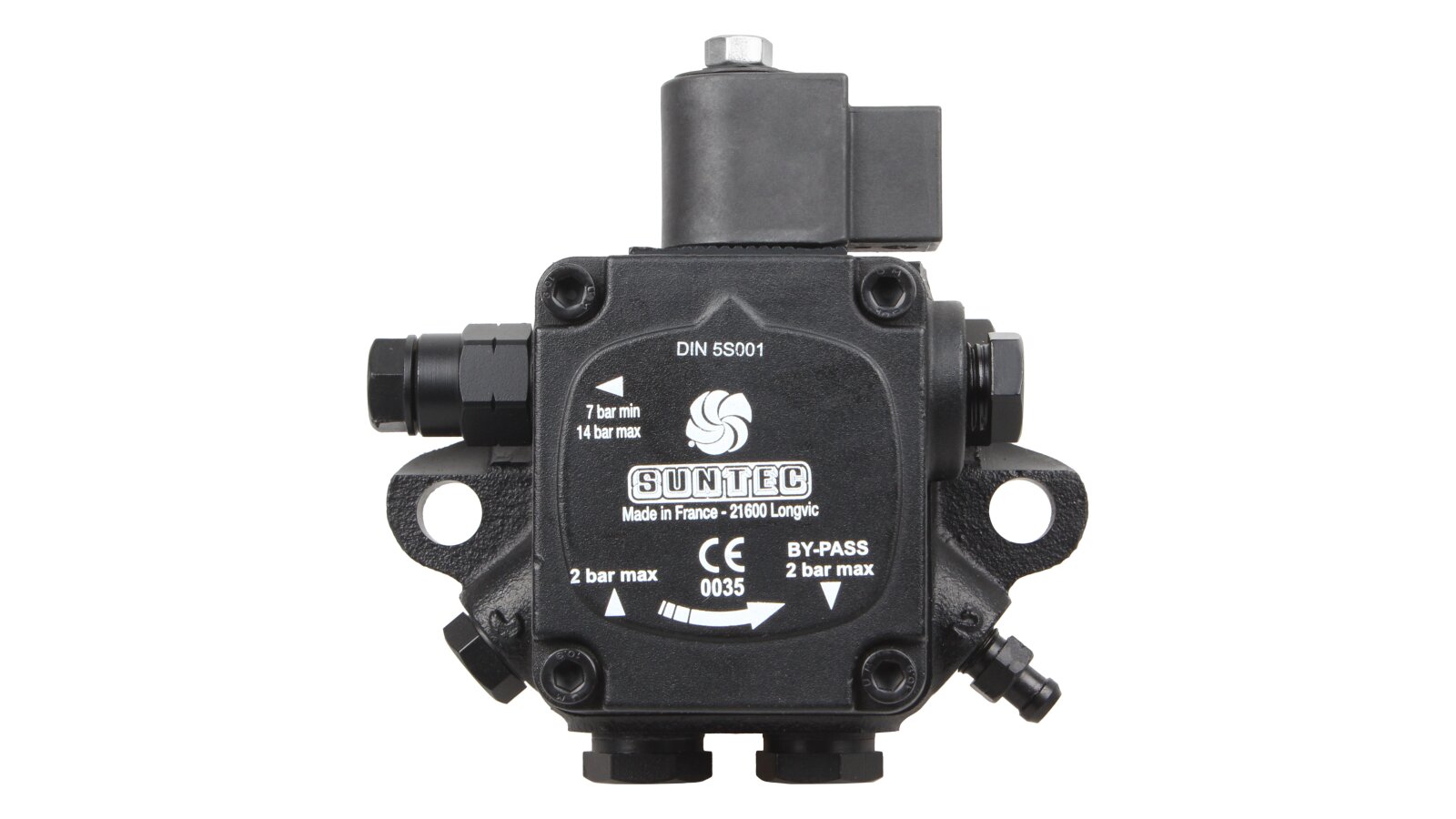 The AS series burner pumps can operate in single- and dual-pipe fuel systems. To connect to a dual-pipe circuit, use an Allen key to install the bypass plug and open the return line.