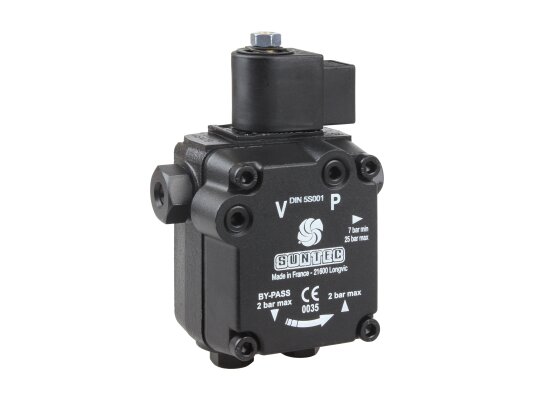 Suntec liquid fuel gear pumps for AS series burners are presented by a wide variety of models, including the energy-efficient AS 47 B 1537 6P 0700. The pressure value in it is adjusted with an adjusting screw directly "on the go". The electromagnetic valve of the "normally open" type is responsible for disconnecting the channel leading to the nozzle line.