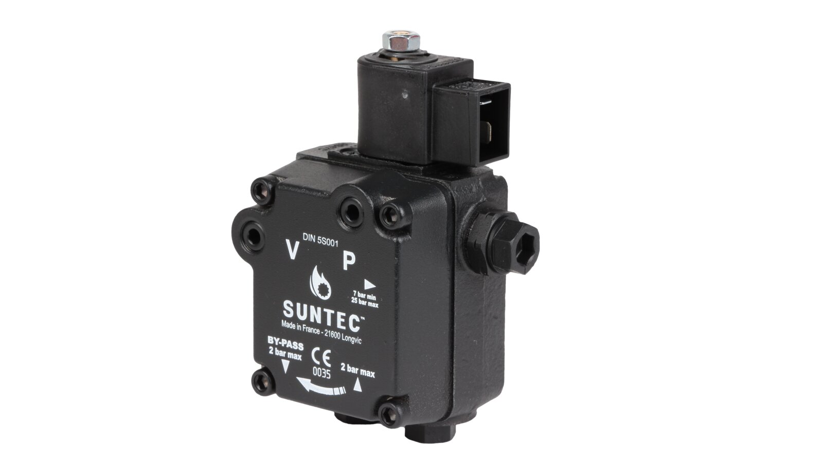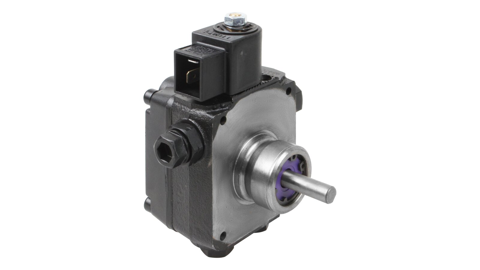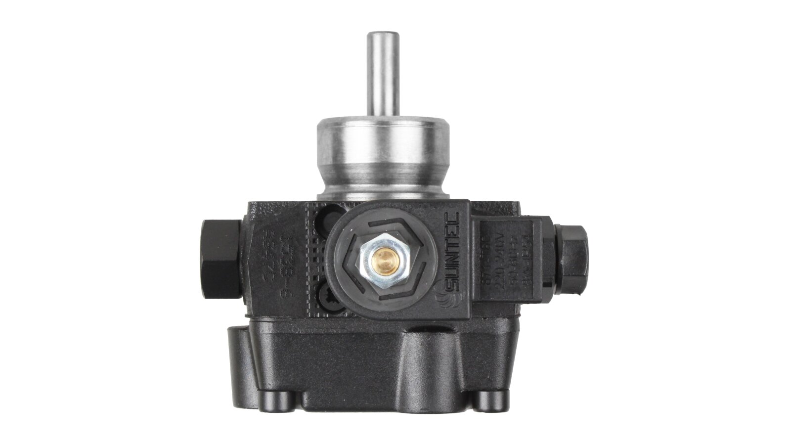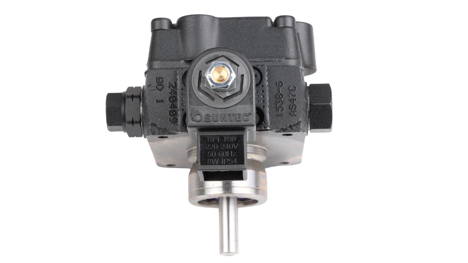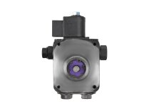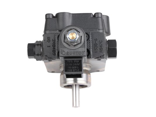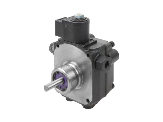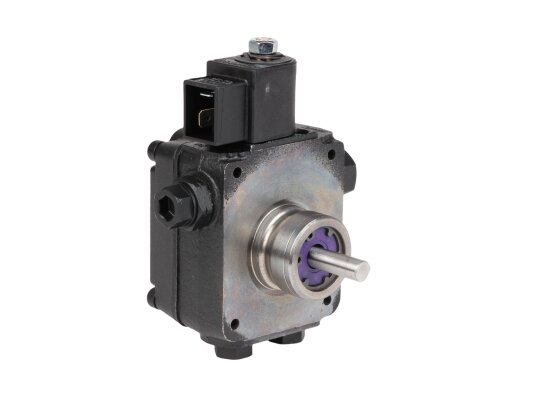 The European company producing fuel equipment Suntec presents the AS 47 C 1538 6P 0700 gear pump for burners. It is the junior model of the AS series with a counterclockwise shaft rotation direction. The device can pump diesel fuel with different kinematic viscosity and supply it to the injector line under pressure in the range of 7-14 atm. A distinctive feature of the unit is the presence of an electromagnetic valve with a shut-off function for controlling the feed, and a slide valve for adjusting the pressure.