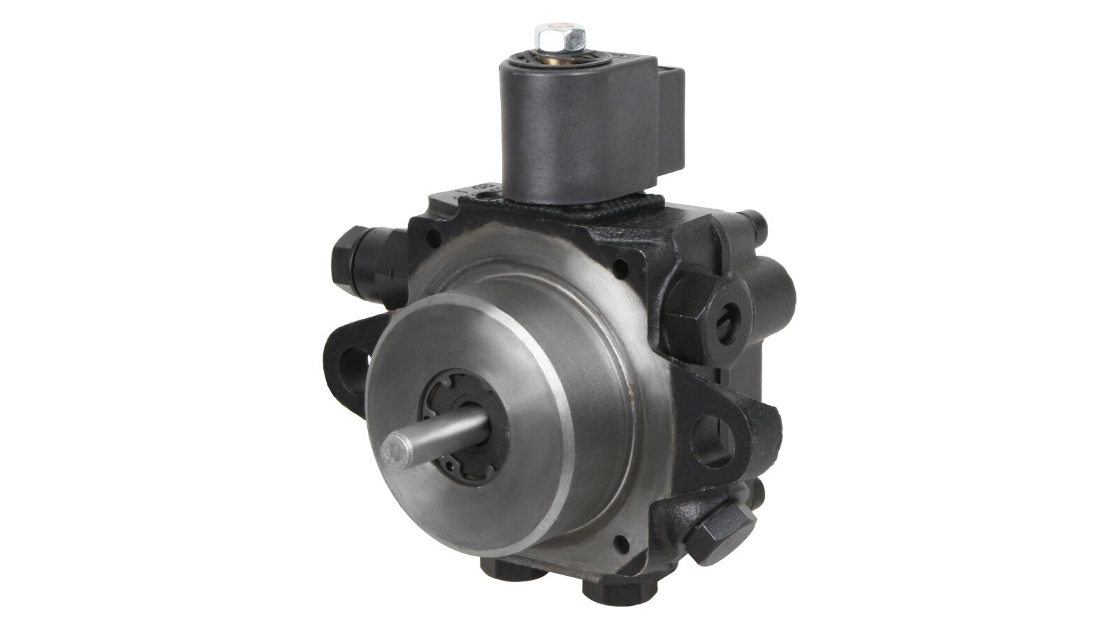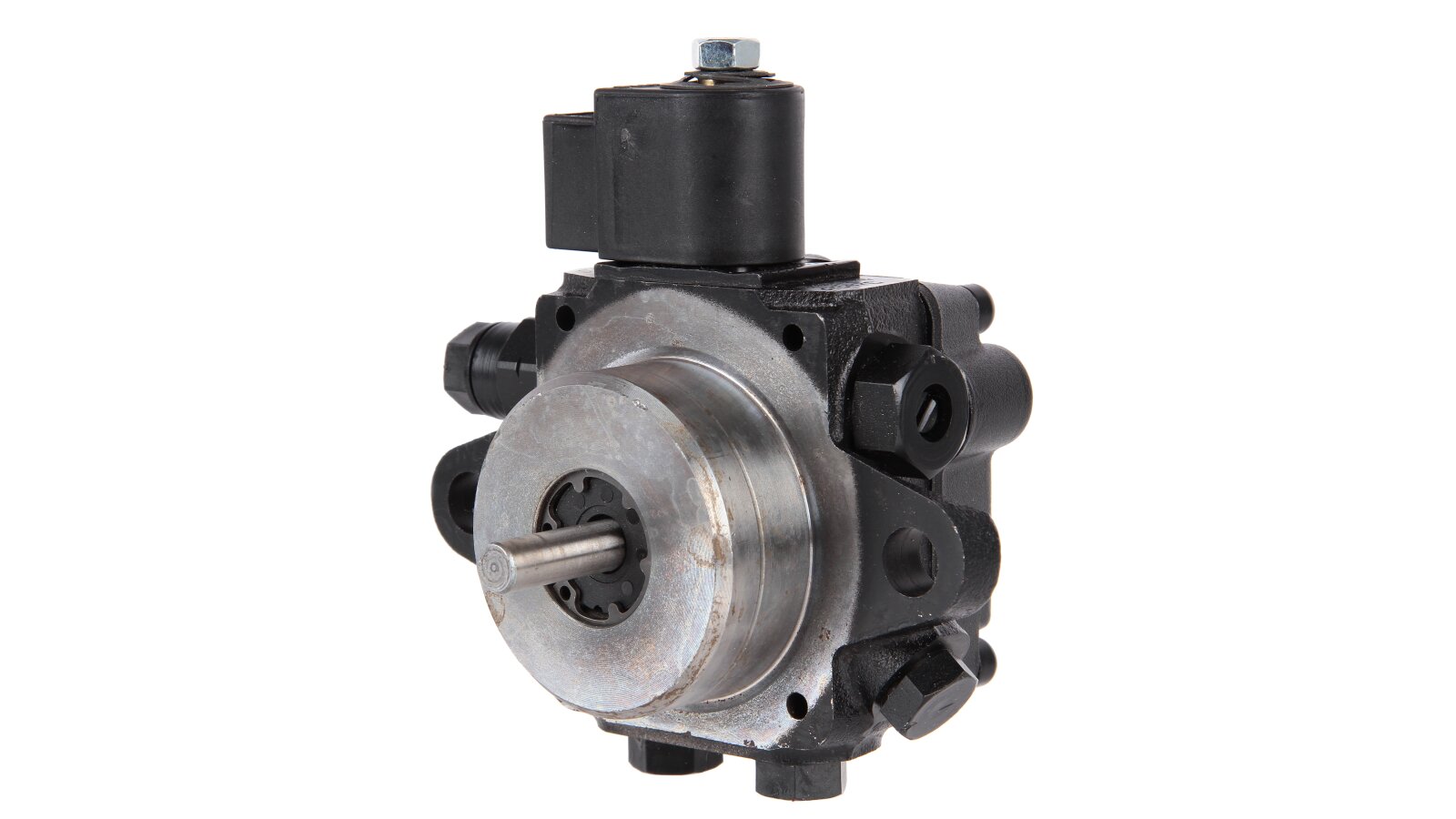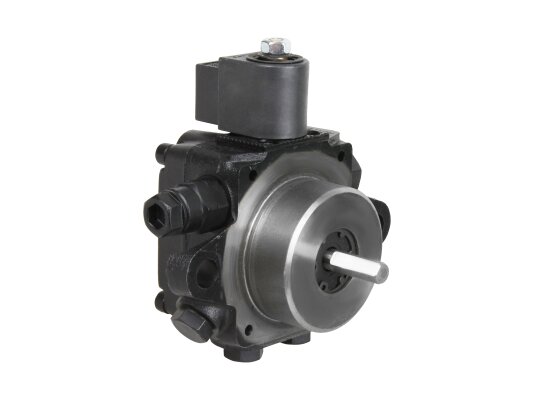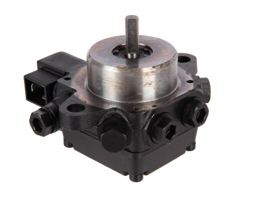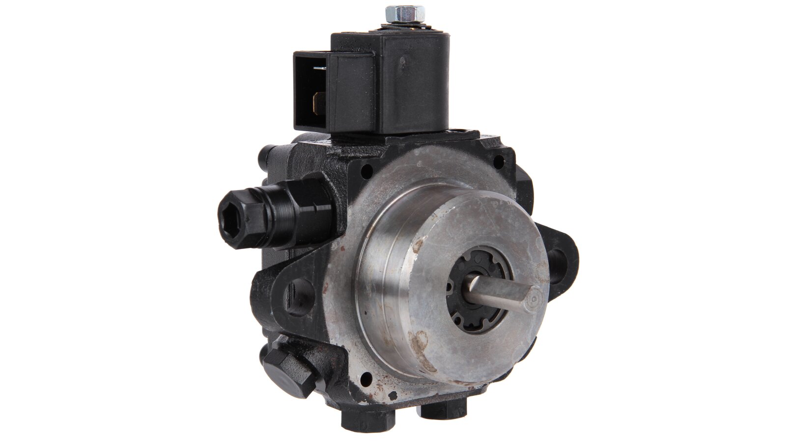 The AS 47 C 7434 4P 0700 diesel burner pump belongs to a series of single-stage models controlled by a bypass solenoid and a slide valve. Its distinctive feature is a reliable flange connection with a sleeve diameter of 54 mm and two lugs for mounting bolts. The gear mechanism shaft rotates counterclockwise at a maximum speed of 3600 rpm. The outlet to the nozzle is installed on the left side of the device.