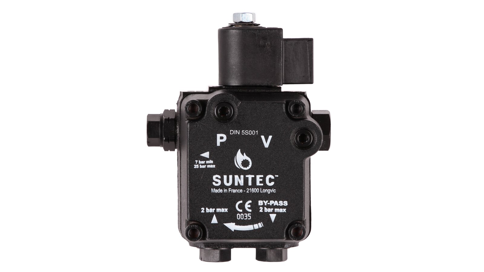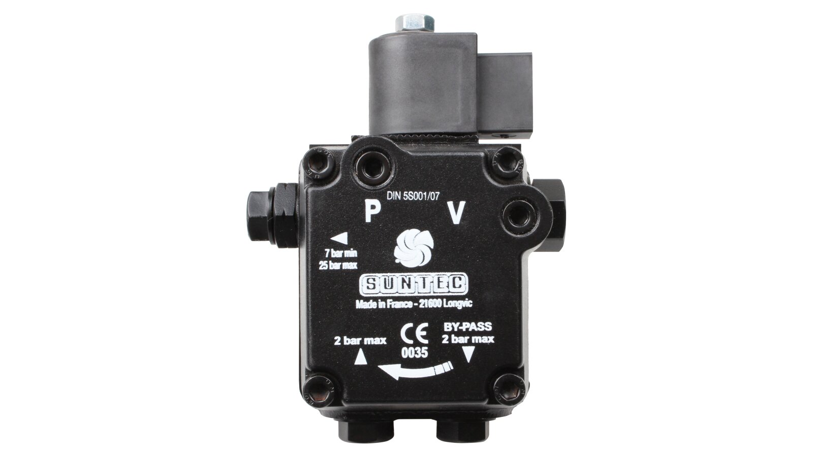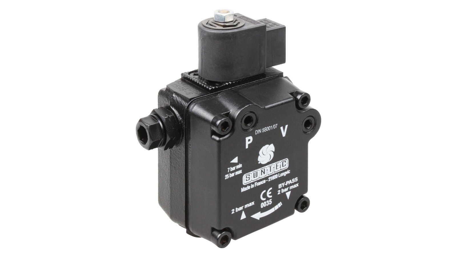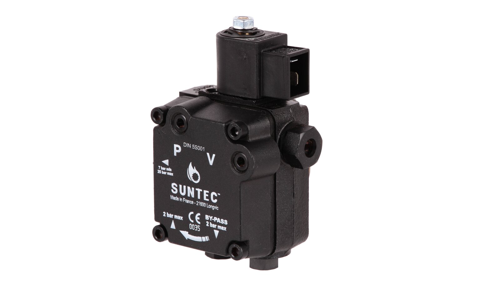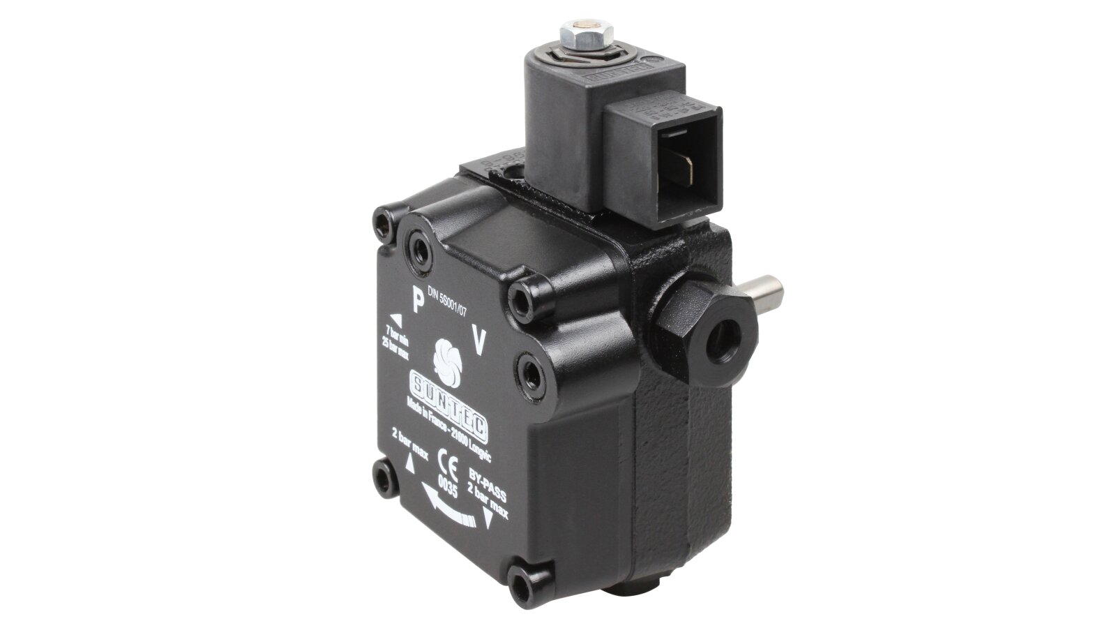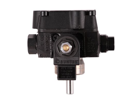 Liquid fuel pump for diesel burners from the French manufacturer Suntec AS 47 D 1596 6P 0700 is a representative of the AS series. It includes single-stage units with a shut-off electromagnetic valve and a slide valve. The device has a right-hand outlet for delivery, and the mechanism shaft rotates counterclockwise (type D). It is used in heating burners with a capacity of up to 1000 kW from well-known manufacturers: Weishaupt, Elco, Baltur, Lamborghini and others.