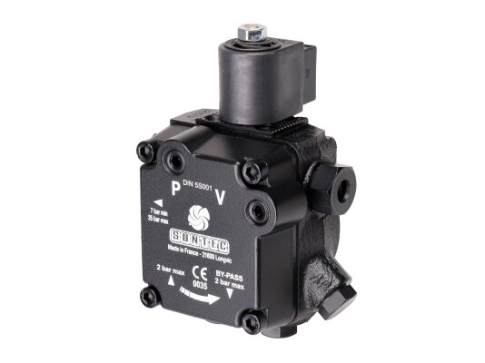 The Suntec AS 57 A 7591 4P 0700 gear fuel pump is the "golden mean" in the ratio of performance/power consumption. This option is optimal for completing burners with a capacity of up to 1000 kW. Unification of the sleeve connection with a landing diameter of 32 mm allows it to be installed in most models from manufacturers Baltur, Elco, Lamborghini, Weishaupt and others.
