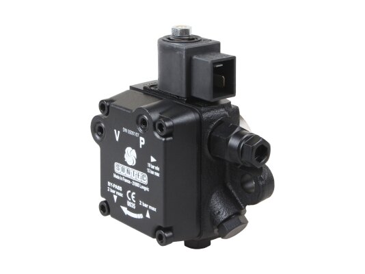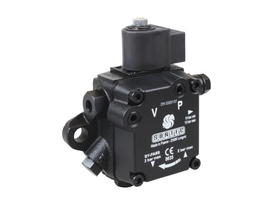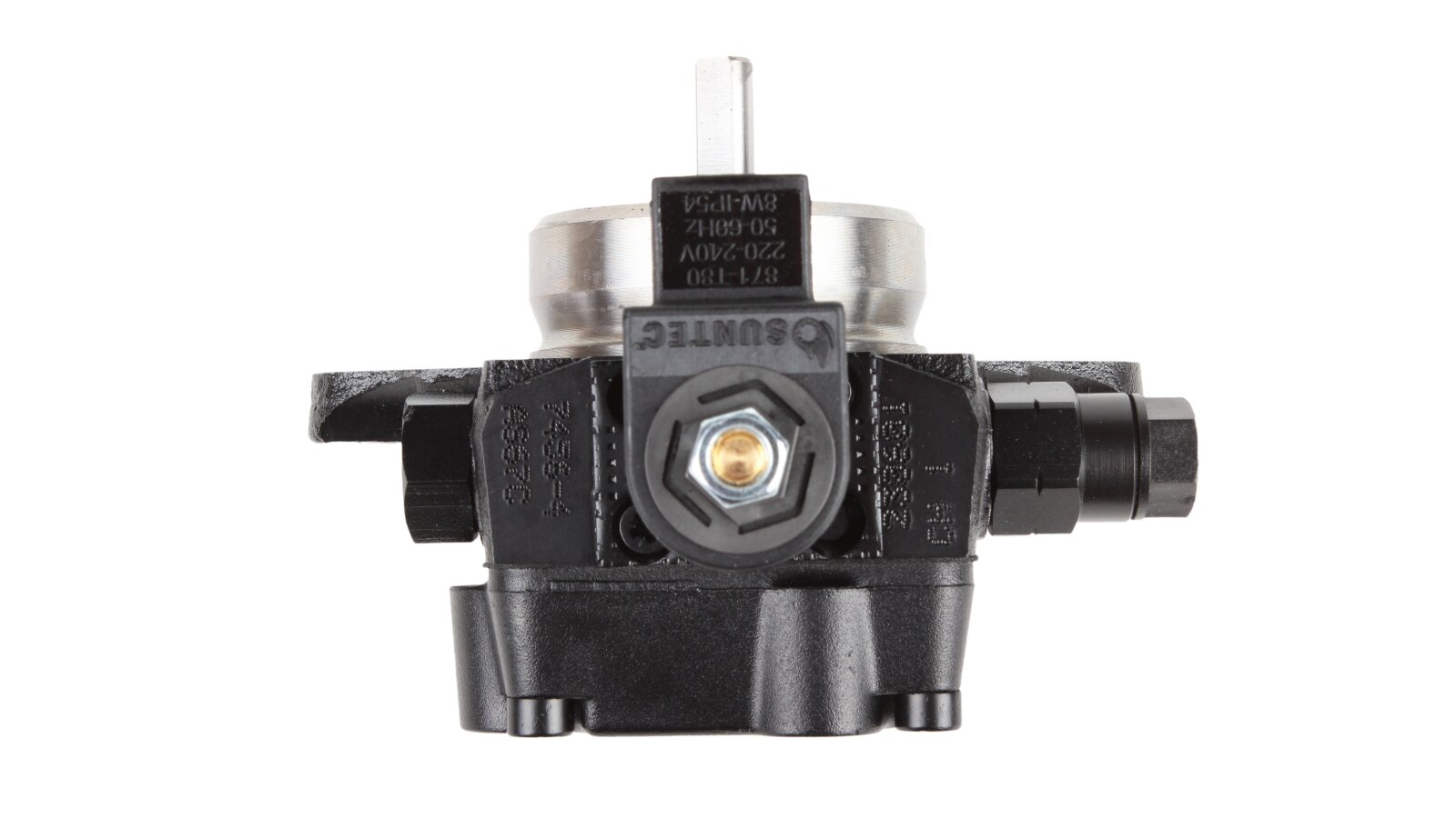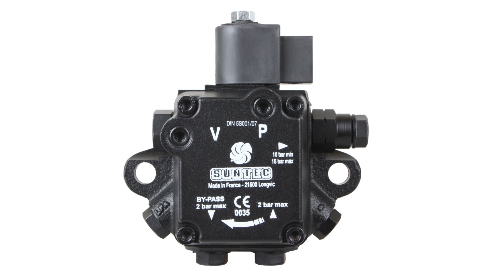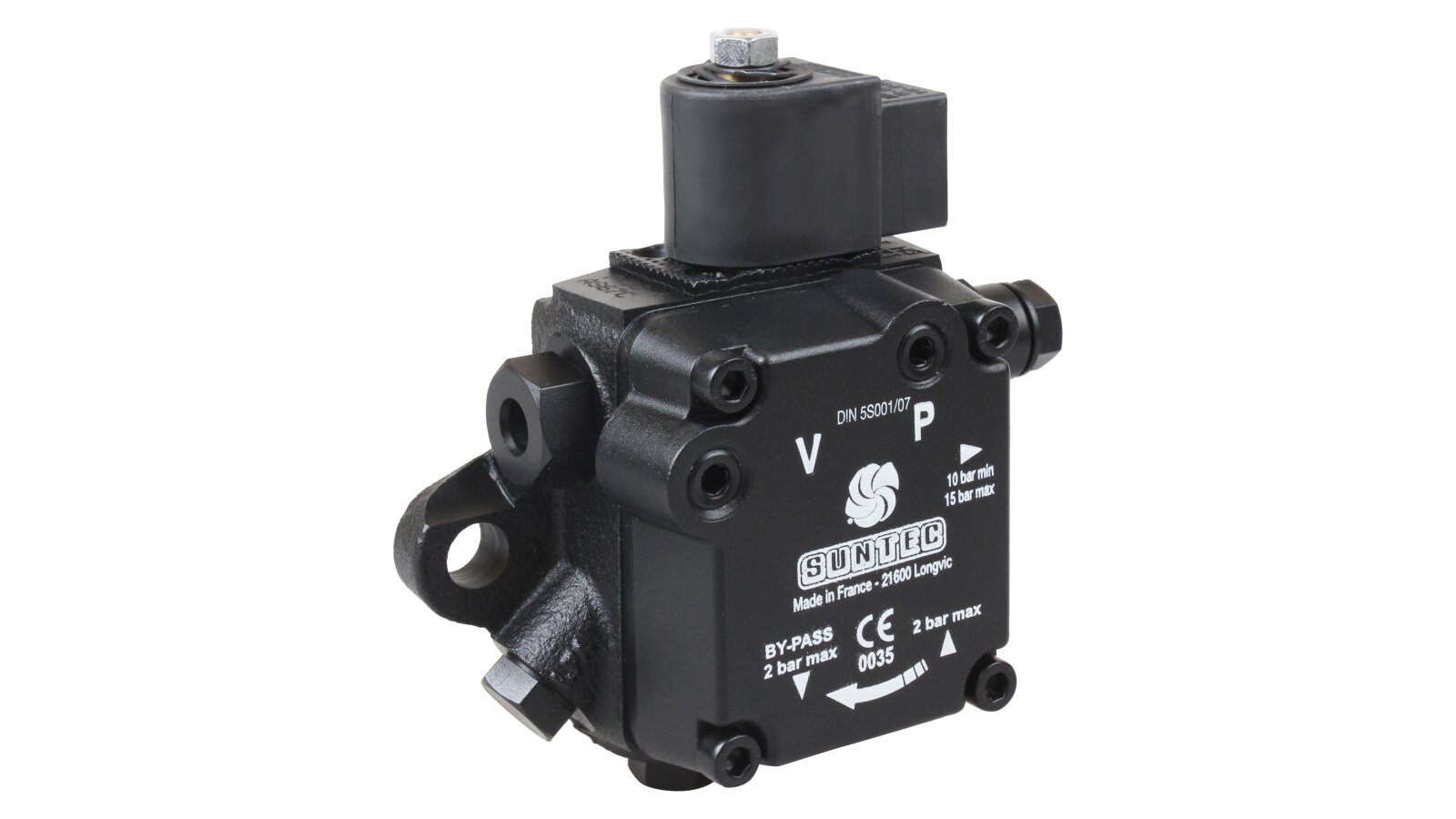 The line of liquid fuel single-stage pumps for heating burners AS from the European concern Suntec includes a high-performance gear-type model AS 67 C 7456 4P 0700. The device is designed to pump diesel fuel of varying viscosity with a volume of up to 80 liters per hour of operation. The design includes a slide valve and electromagnetic valves to control the operating modes of the unit.