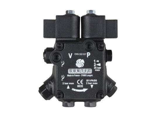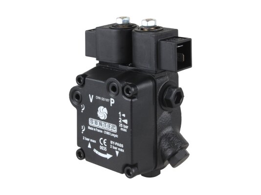 Among fuel pumps for low-power diesel burners, the AT2 55 B 9515 4P 0700 model from the French company Suntec has taken an advantageous position. It has optimal performance with small dimensions and weight, and can also operate in two pressure modes. The latter is activated by a "normally open" type bypass solenoid valve located at the top of the pump. The model is compatible with most supercharged heating burners from such companies as Elco, Lamborghini, Oilon, Weishaupt and Baltur.