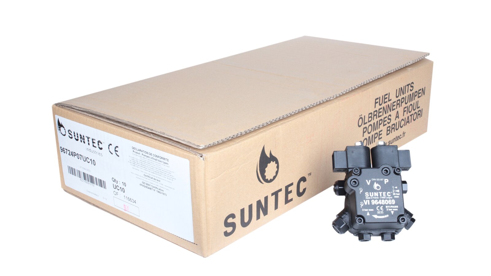 The proposed model of the fuel pump for diesel burners from Suntec has a significant advantage over competitors - it works in two modes with several types of fuel. For this purpose, the design uses high-quality valves and spools, adjusted and tested at the factory, as well as sealing gaskets made of a special material. Control is carried out manually or automatically. The device is mounted in Oilon, Elco, Lamborghini, Baltur and Weishaupt burners with a maximum power of up to 1000 kW.