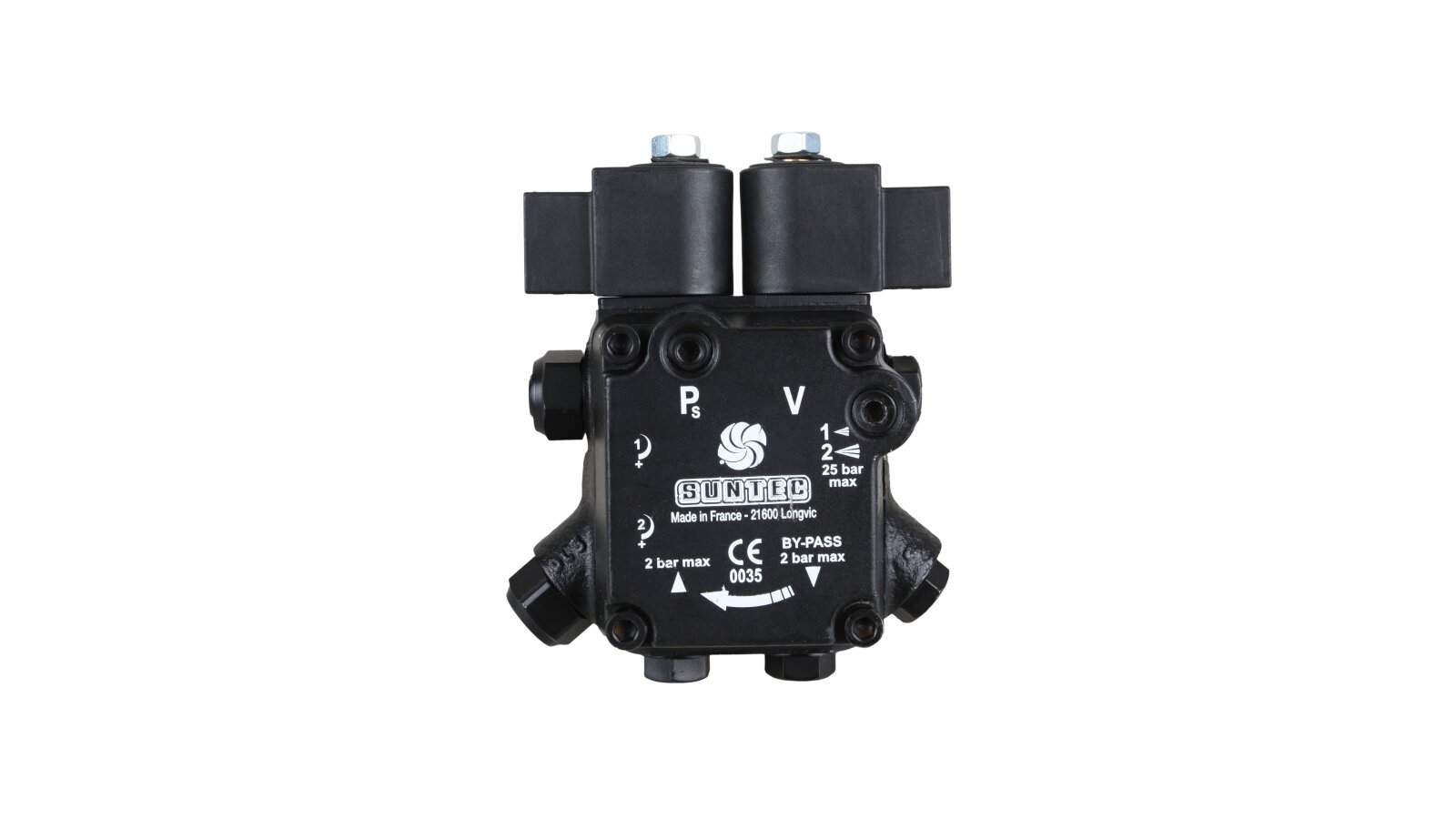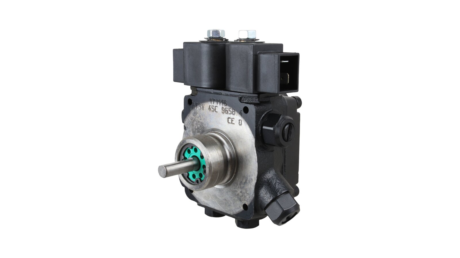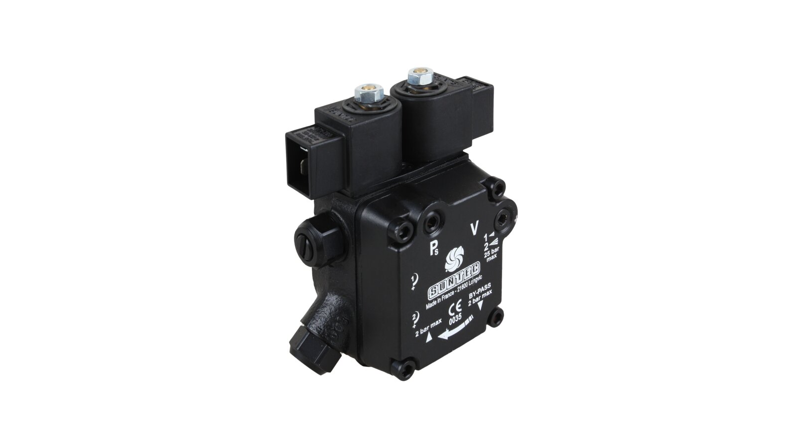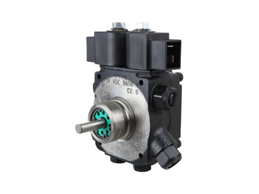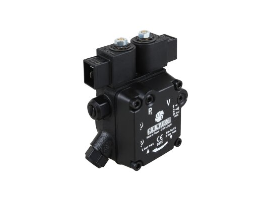The modern dual-mode gear pump Suntec AT3 45 C 9558 4P 0500 is a representative of the line of energy-efficient devices from a French company with a low productivity level. Thanks to the standard EN 225 sleeve connection with a diameter of 32 mm, it fits many diesel burners with a rated power of up to 1000 kW: Lamborghini, Baltur, Weishaupt and Elco.
