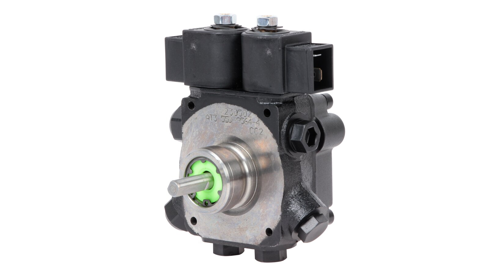 The bypass electromagnetic valve performs the function of the mode switch. When switched off, it activates the first stage and vice versa. A second (cut-off) solenoid is also installed nearby, designed to stop the supply of diesel fuel to the injector line regardless of the engine speed.