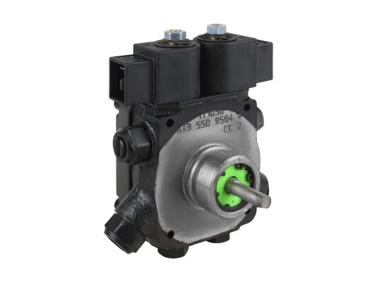 High-quality branded burners Lamborghini, Weishaupt, Elco and Baltur, running on diesel fuel, require equipment of the appropriate level. This is the liquid fuel gear pump from the French company Suntec AT3 55 D 9564 4P 0700 with two pumping modes, differing in pressure on the nozzle.