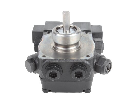 The main working element is a gear pair, which are engaged with each other by a pinion and driven by the shaft of an electric motor. The working fluid is sucked from the tank, cleaned by a mesh filter from foreign inclusions of 150 µm in size and enters the spool valves under pressure.