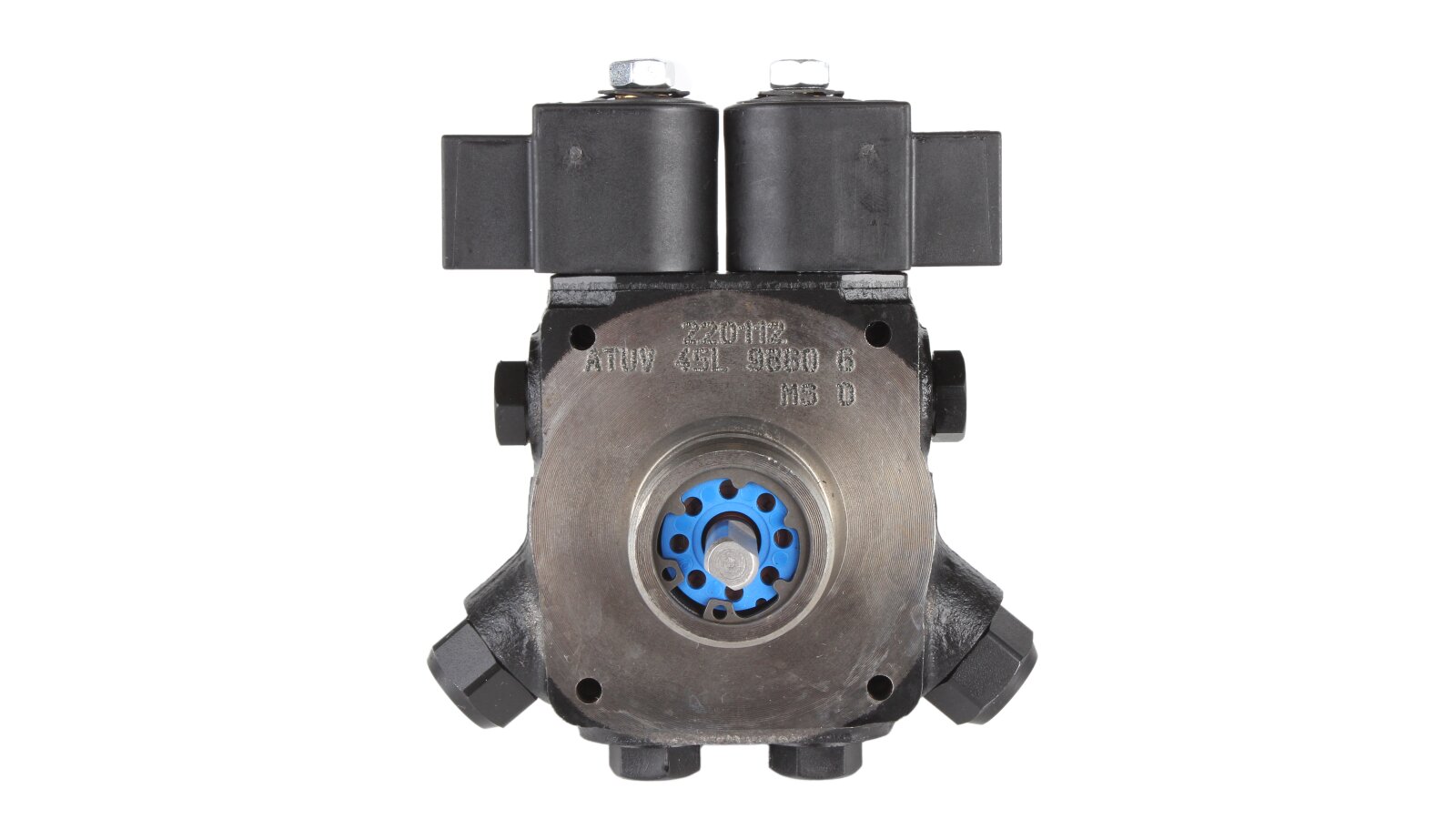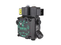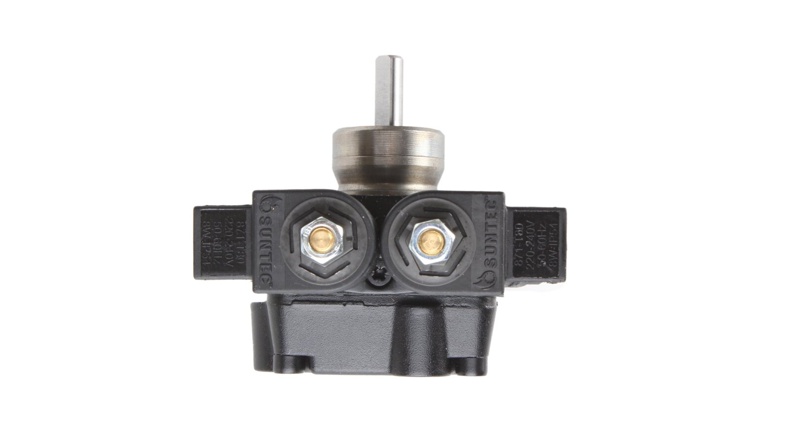 The Suntec ATU burner pump can be built into single- and dual-pipe assembly systems. A bypass plug is screwed into the return line hole for a 2-pipe connection or a blind plug for a single-pipe wiring scheme.
