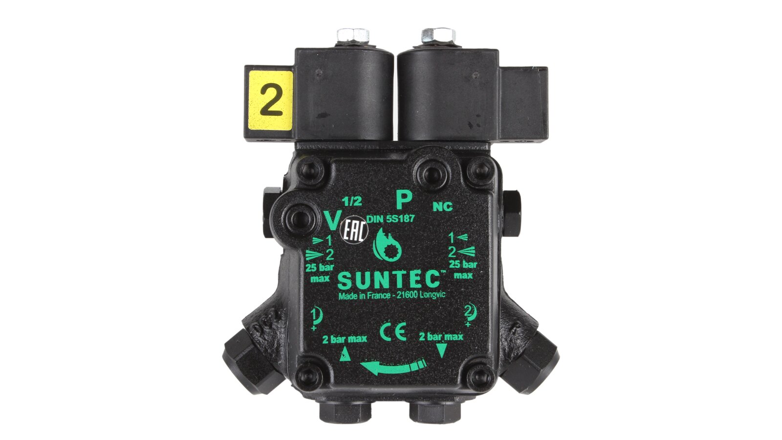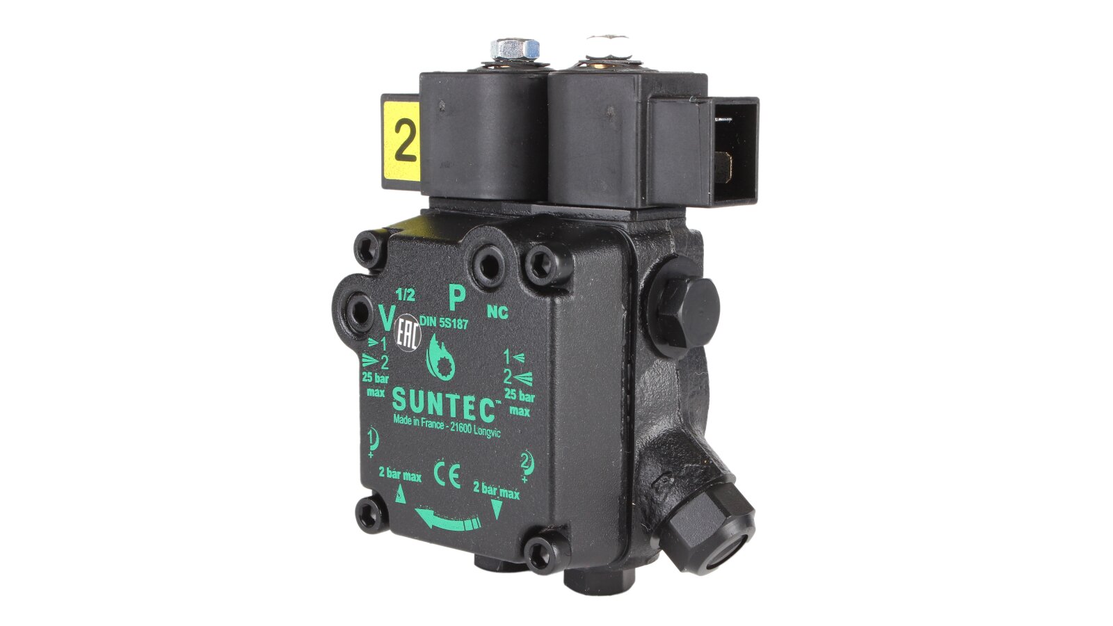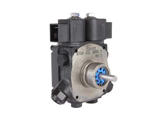 The Suntec ATU V 45 L 9860 6P 0700I burner pump is used to equip two-stage liquid fuel burners for pumping fuel under a set pressure. Thanks to a special shaft seal, it can safely pump not only diesel fuel, but also biodiesel. The equipment is equipped with an electromagnetic valve and two pressure regulating valves.