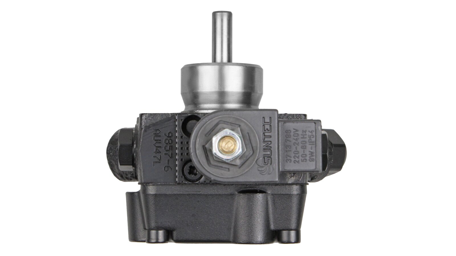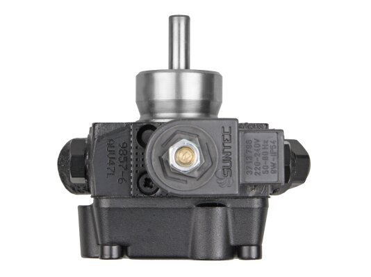 Single-stage liquid fuel pump AU V 47 L 9857 6P 0500 for pumping diesel fuel, kerosene and biodiesel is a special model developed by the European concern Suntec. Its popularity among repair crews and service centers is due to the replaceability of pumps of the AS 47 and AL 35 series. The device is equipped with an electromagnetic solenoid with a shut-off function, and the output to the injectors can be connected both on the right and on the left.