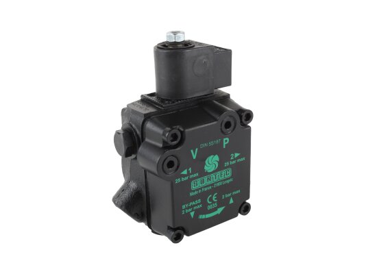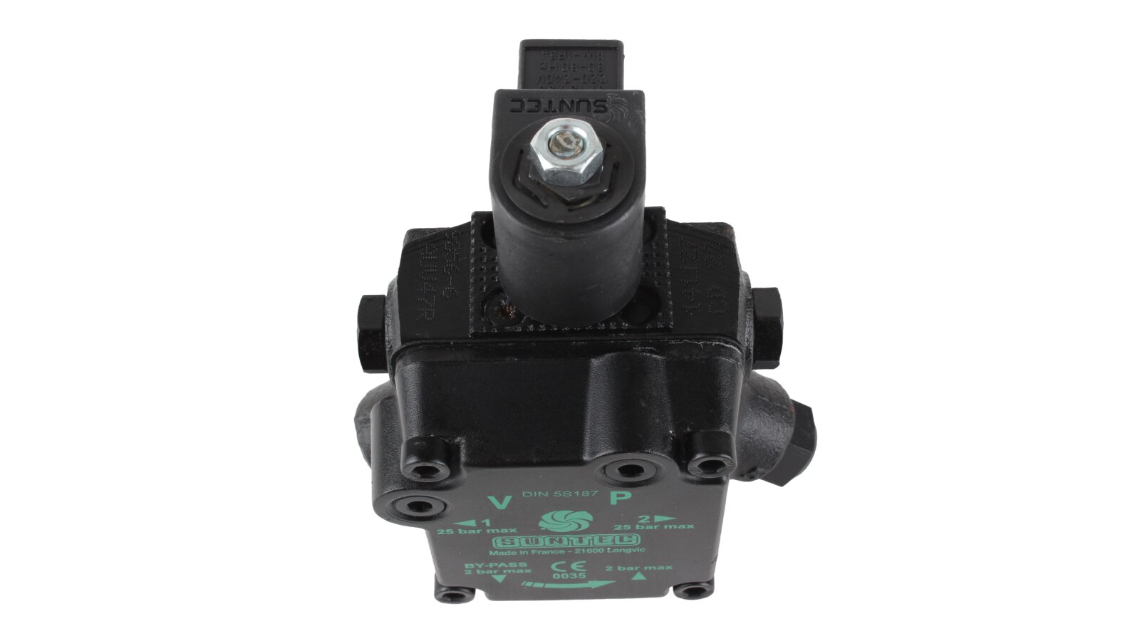 The single-stage gear pump AU V 47 R 9856 6P 0500 with a maximum capacity of 44 l/h was developed by the French concern Suntec for supplying diesel fuel, kerosene and heating oil to the nozzle line of heating burners. The peculiarity of the model is its interchangeability with liquid fuel pumps of the AS 47 and AL 35 series, which makes it in demand by installation and repair teams.