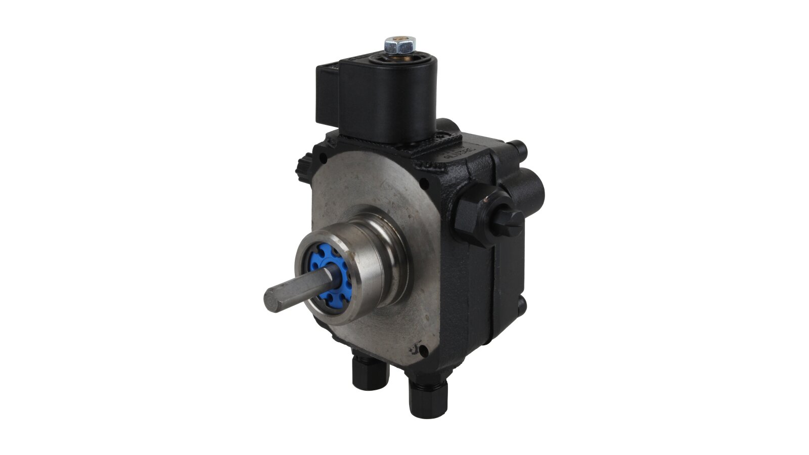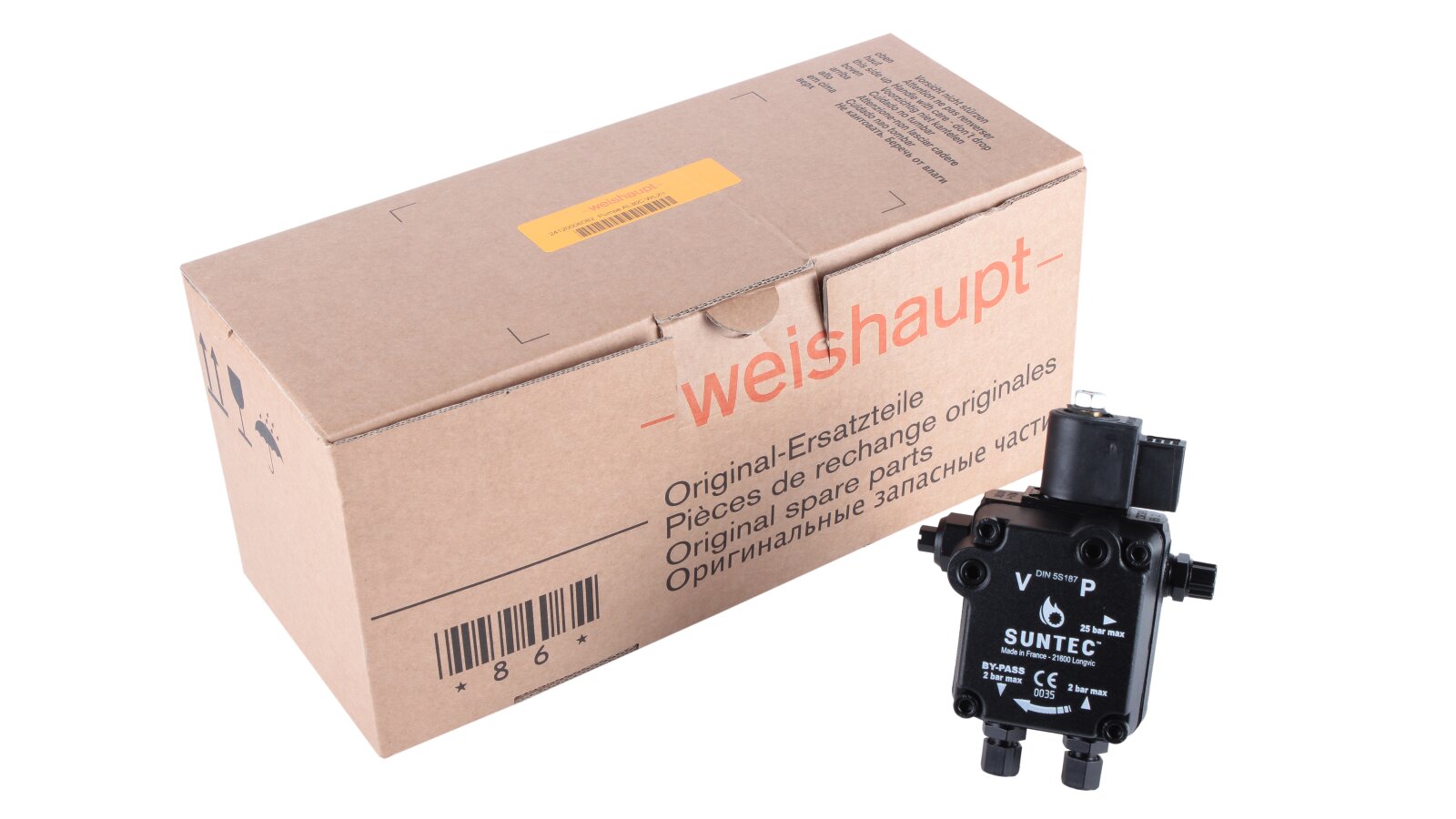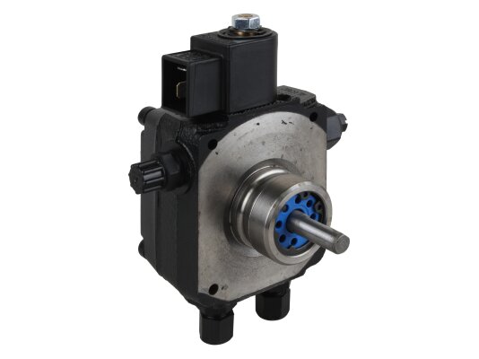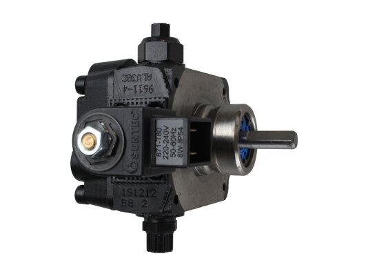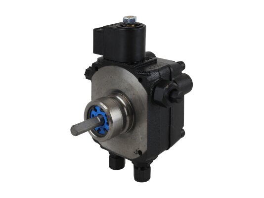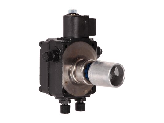 The Weishaupt AL V 30 C 9611 4P 0700 burner pump with fittings, art: 24120006082, can pump diesel and biodiesel fuel. Equipped with a locking solenoid valve with a shut-off function. It is used in single-stage burners with or without a return line. The feed pressure is adjustable in the range of 4-18 bar, factory set to 9 bar. It is installed in WL20 burners.