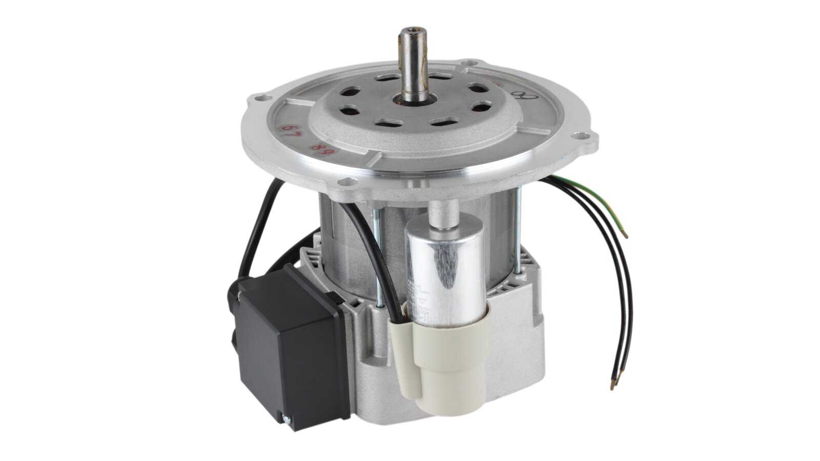 High starting torque, low starting currents and an increased service life are achieved by a starting capacitor.