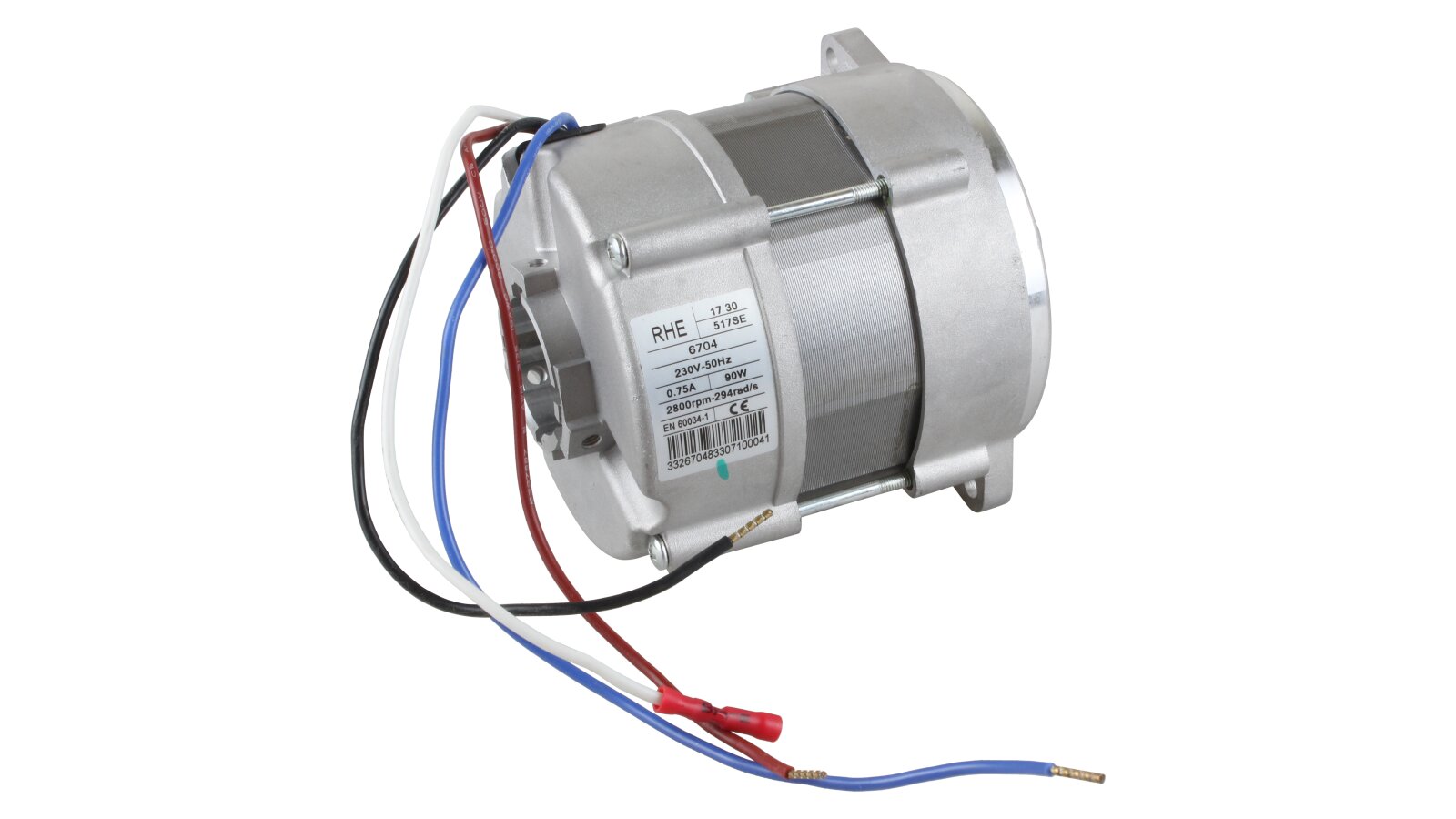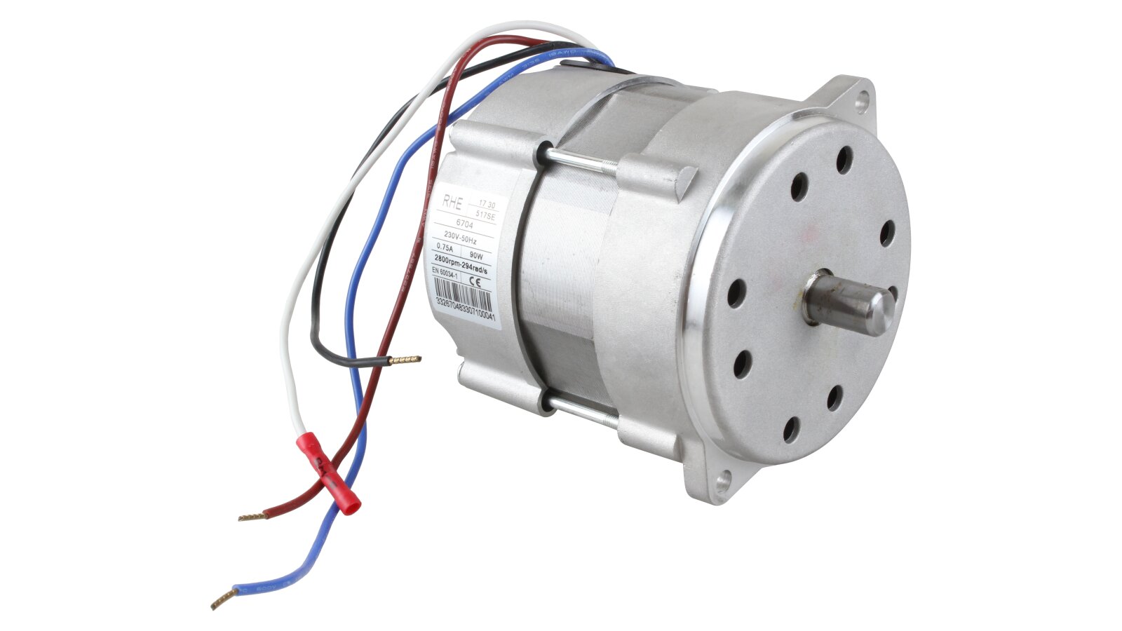 The single-phase asynchronous open-type electric motor RHE 517SE with a power consumption of 90 W is used as a power drive for liquid fuel burners with supercharging. The motor with a squirrel-cage rotor operates from a 230 V network with a frequency of 50/60 Hz. A distinctive feature of RHE devices is wear resistance, increased service life of windings, ease of mechanical installation and electrical connection, as well as low operating costs.