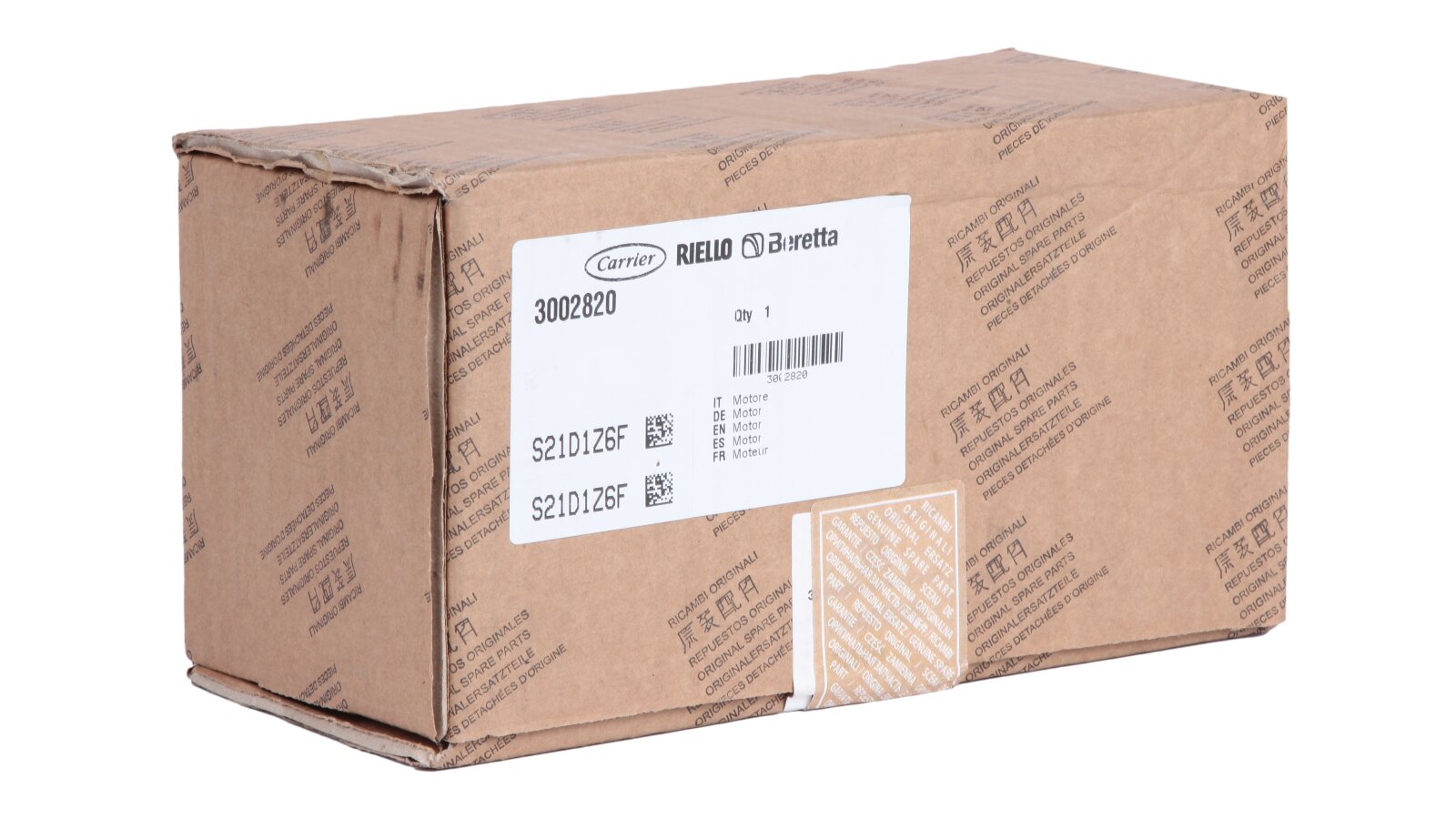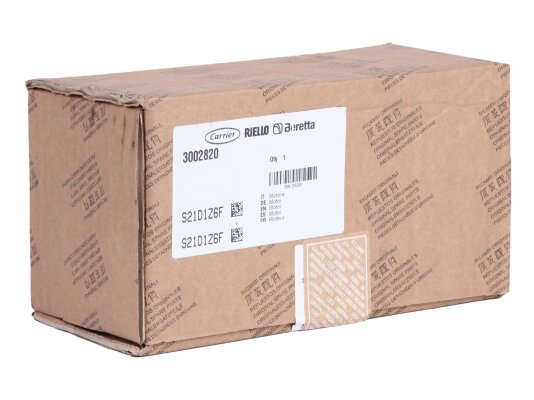 The Riello RHE 600SE electric motor, article number: 3002820, is used as a power drive for a liquid fuel pressurized burner pump. The device operates from a single-phase network with a voltage of 230 V.