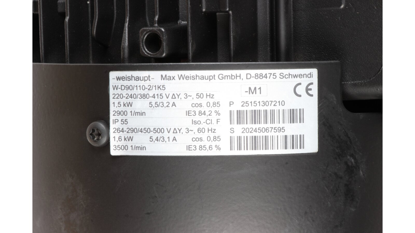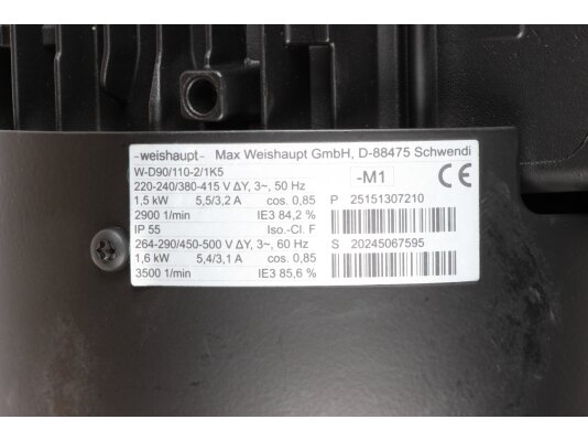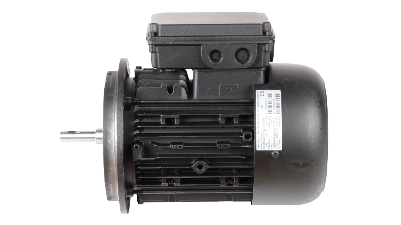Manufacturer Part Number: 25151307210Insulation class of wires: FNominal speed: 2900 rpmElectric power: 1500 WAmperage: 5.5 / 3.2 ACurrent frequency: 50 HzShaft diameter: 14 / 20 mmElectric power: 1.5 kWShaft length: 55 mmElectric motor type: inductionNumber of Phases: 3Degree of protection: IP55Voltage: 220 V / 380 V
