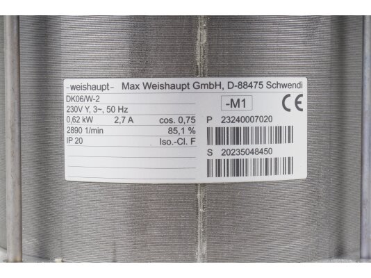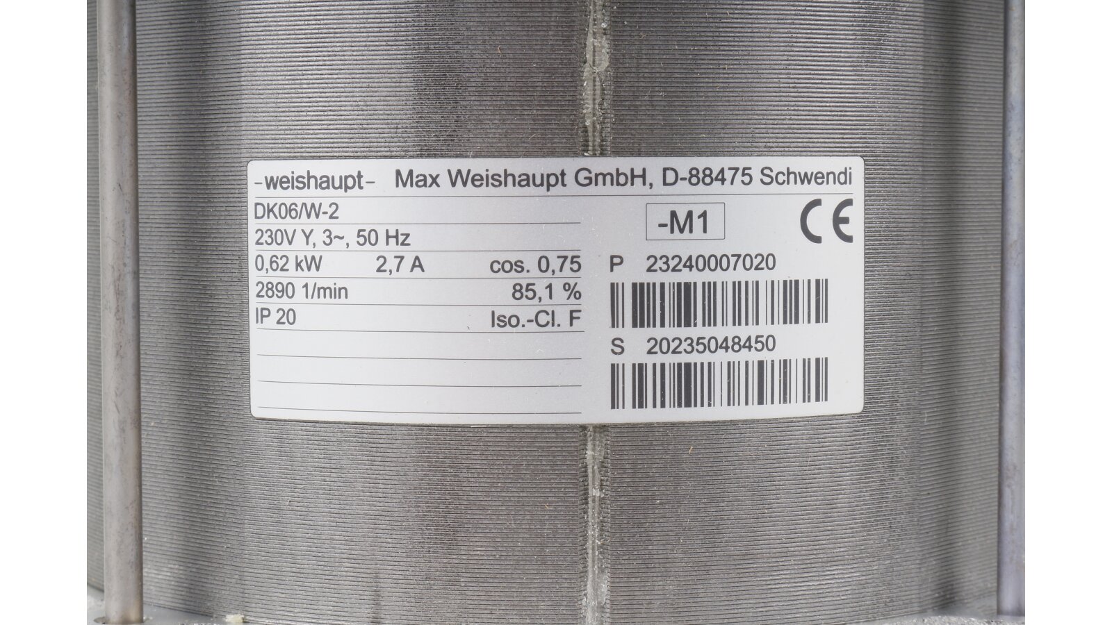 Electric motor Weishaupt DK06/A-2, art: 652026 is used in heating equipment and other furnace units. It features economical energy consumption, compact dimensions, and reliable design.
