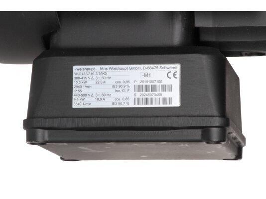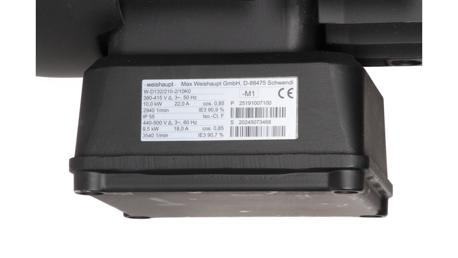 Manufacturer Part Number: 25191007100Insulation class of wires: FNominal speed: 2940 rpmElectric power: 10000 WAmperage: 22 ACurrent frequency: 50 HzElectric power: 10 kWElectric motor type: inductionNumber of Phases: 3Voltage: 380 V - 415 VDegree of protection: IP55