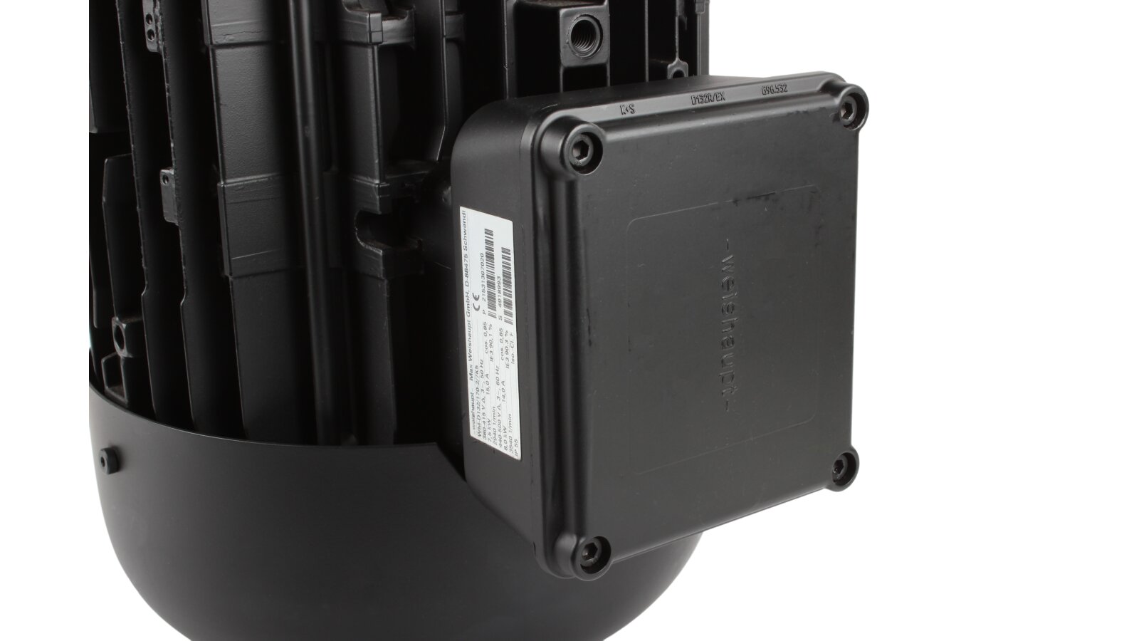 Electric motor Weishaupt WM-D132/170-2/7K5 with terminal block, art: 21531307020 operates from a 3-phase electrical network. It is intended for equipping and stable operation of industrial heating systems and process units. It is characterized by high power, reliable dust- and moisture-proof design, stable operation without overheating, wear- and corrosion-resistant, low noise and vibration levels.