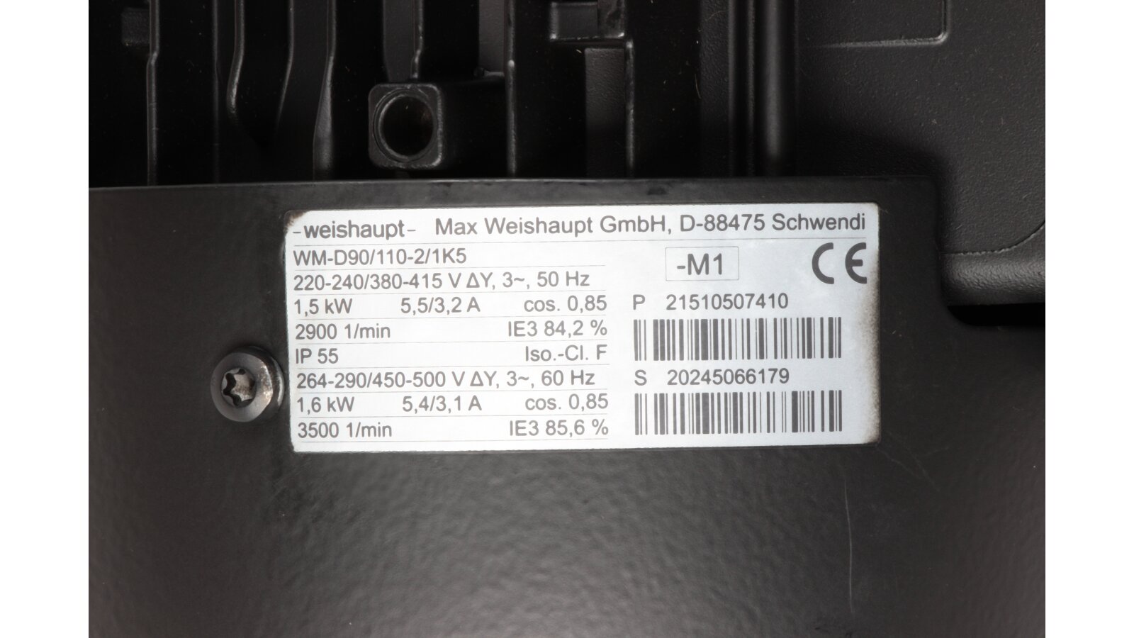 Manufacturer Part Number: 21510507410Nominal speed: 2900 rpmElectric power: 1500 WAmperage: 5.5 / 3.2 AShaft diameter: 14 mmElectric power: 1.5 kWShaft length: 43 mmElectric motor type: inductionNumber of Phases: 3Current frequency: 50/60 HzInsulation class of wires: FDegree of protection: IP55Voltage: 220 V / 380 V