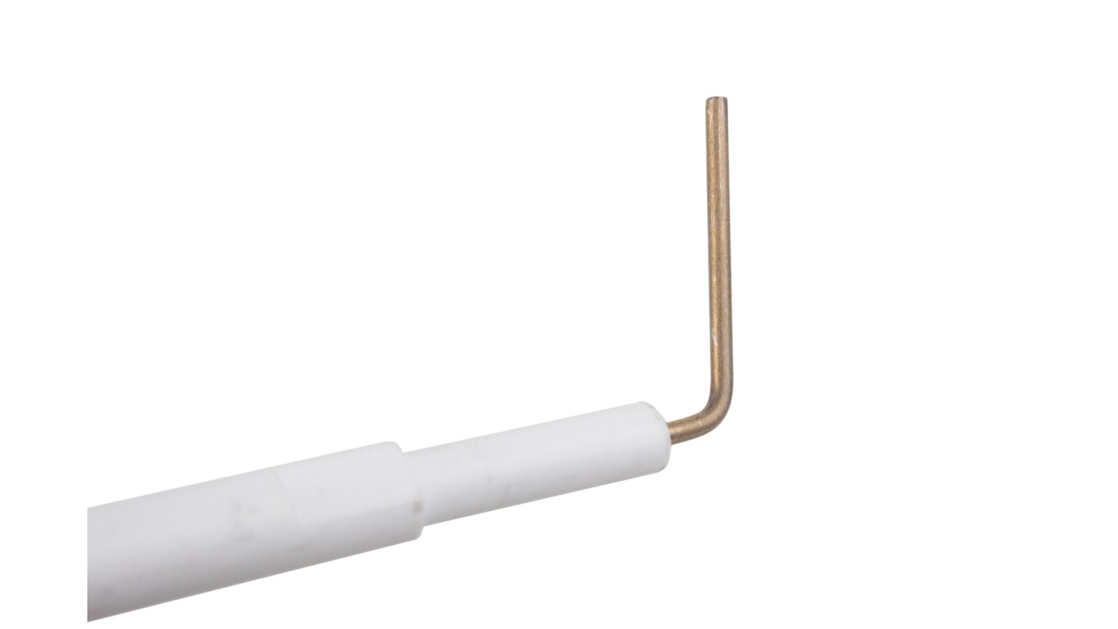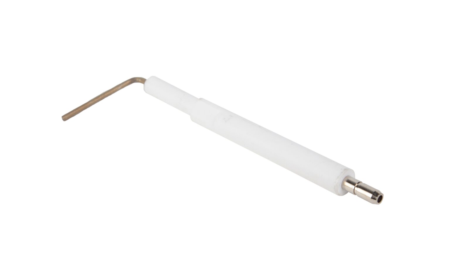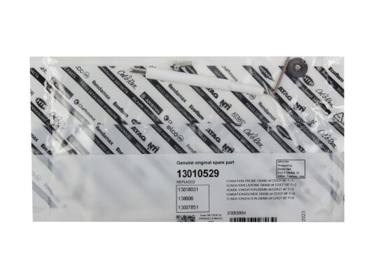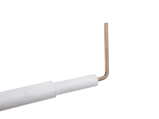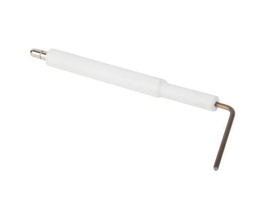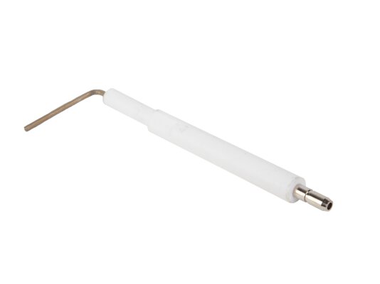 Ionization electrode 105 mm article 13010529 is one of the components of the gas burner safety system. The task of the ionization electrode is continuous monitoring of the burner flame combustion. The ionization sensor is connected to the automation using a cable. When the torch disappears, the combustion machine immediately stops the gas supply, preventing the risk of an emergency. Electrical and thermal insulation of the metal rod is made of ceramics. The electrode is connected to the conductive cable via a Ø4 mm plug.