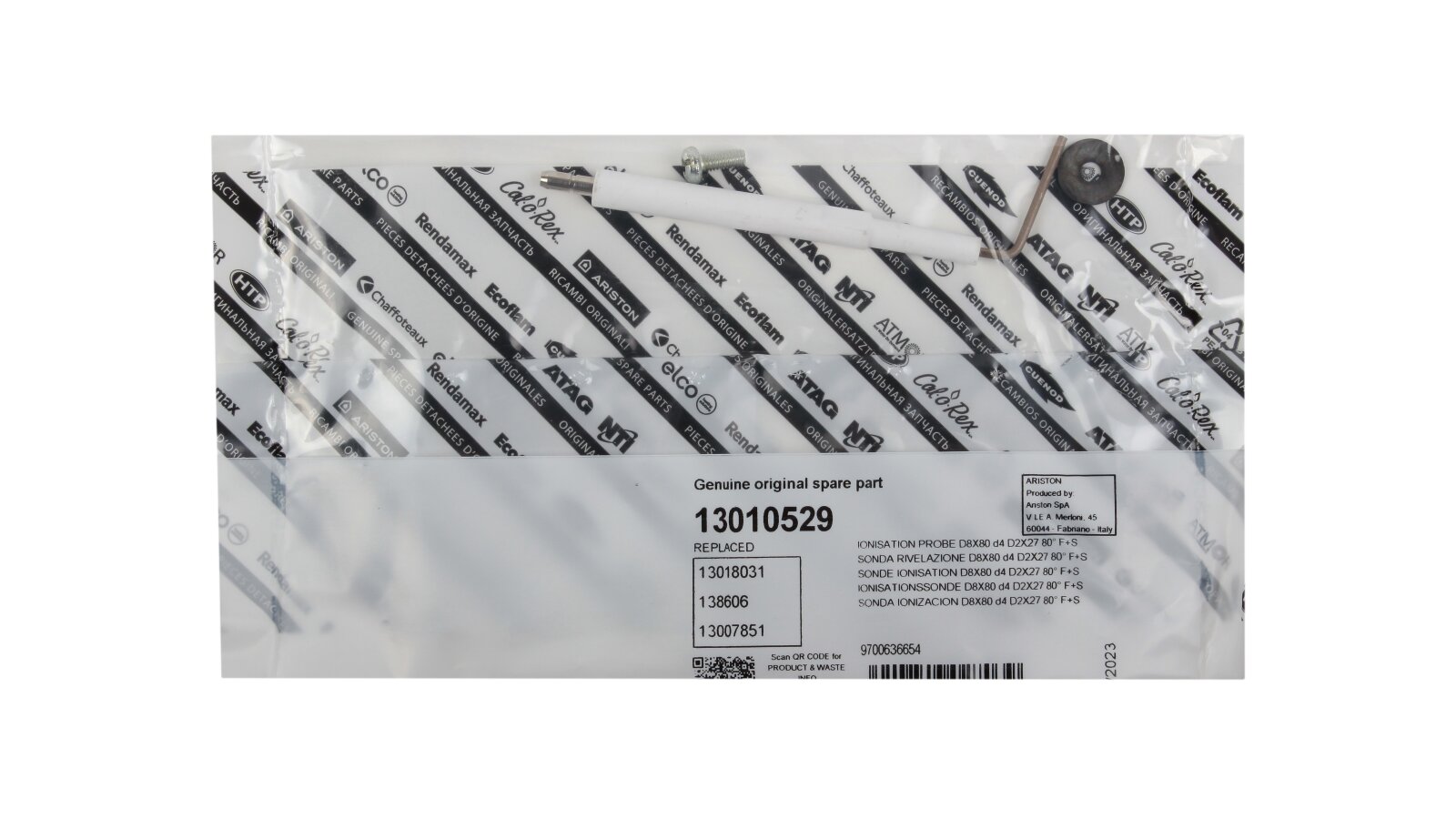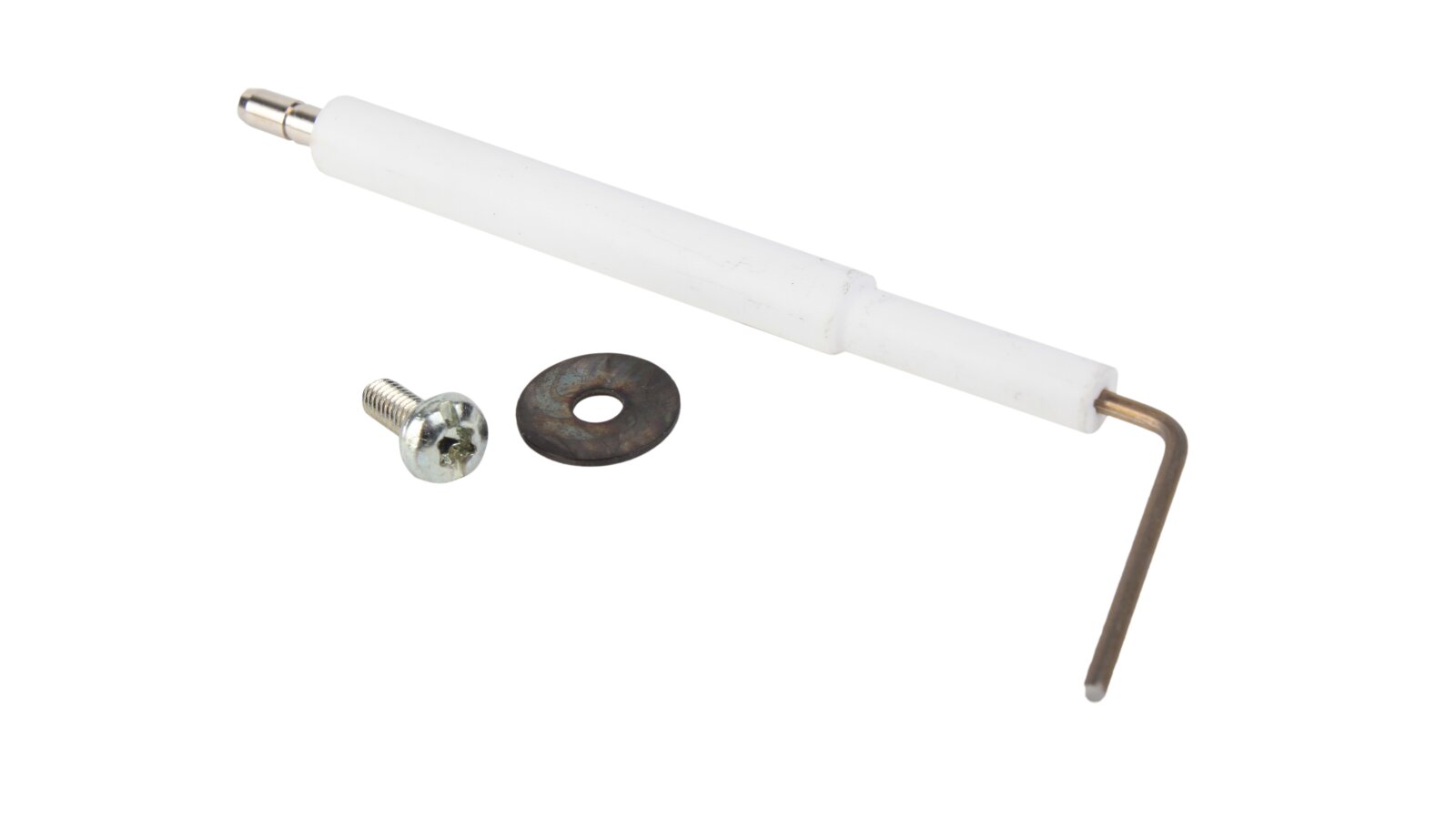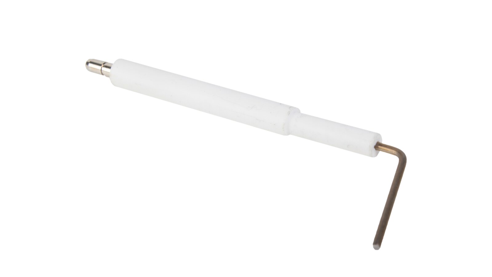 Ionization electrode 105 mm article 13010529 is one of the components of the gas burner safety system. The task of the ionization electrode is continuous monitoring of the burner flame combustion. The ionization sensor is connected to the automation using a cable. When the torch disappears, the combustion machine immediately stops the gas supply, preventing the risk of an emergency. Electrical and thermal insulation of the metal rod is made of ceramics. The electrode is connected to the conductive cable via a Ø4 mm plug.