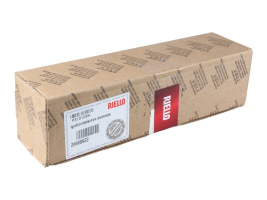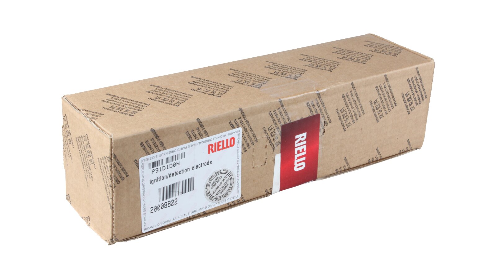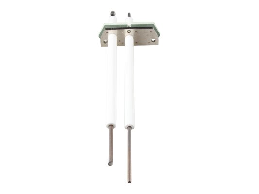 Riello ionization electrode, art. 20008822 is used in industrial burner flame control systems. In case of flame loss, it sends a signal to the automation for immediate termination of gas supply for combustion and safe operation of the gas installation. The electrode consists of metal rods protected by heat and electrical insulation shells. A special bracket ensures reliable installation and absence of vibrations. Ionization cables are connected using plugs.