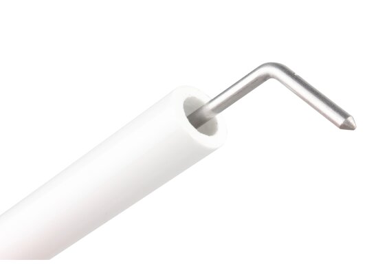 The Riello ignition electrode 147 mm, art.: 3004842 is used in liquid fuel installations for spark ignition of fuel. It is used to assemble automatic burner ignition systems. Instantly forms a high-voltage electric discharge that ignites the fuel when current is supplied from the transformer. Conforms to European electrical safety standards.