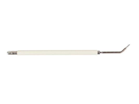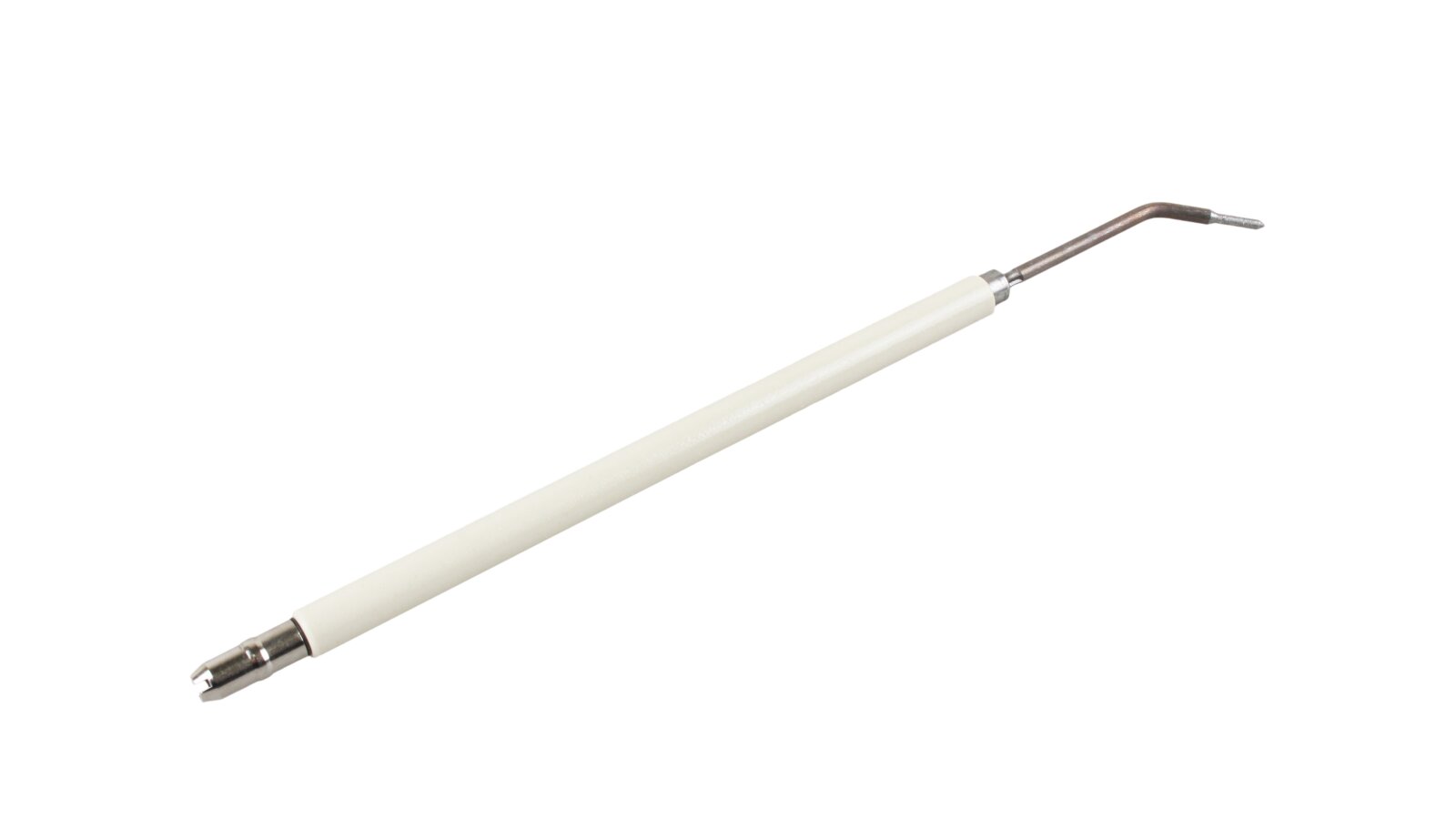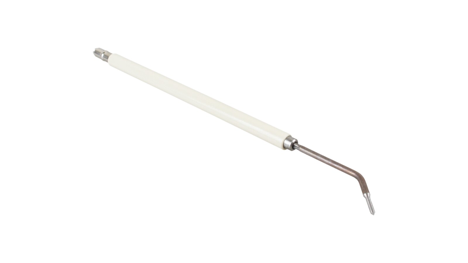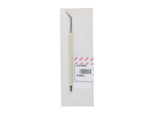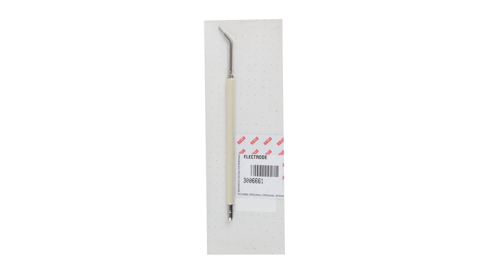The Riello ignition electrode, art. 3006661 ignites the combustible mixture with a high-voltage spark. It is built into the ignition unit of an industrial burner together with the ignition transformer. It is characterized by a high level of electrical insulation, reliable design, and resistance to high temperatures.