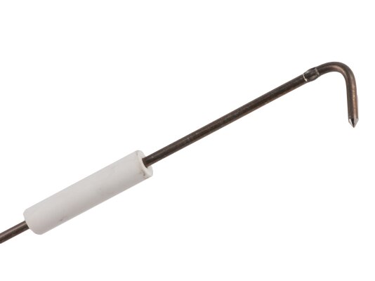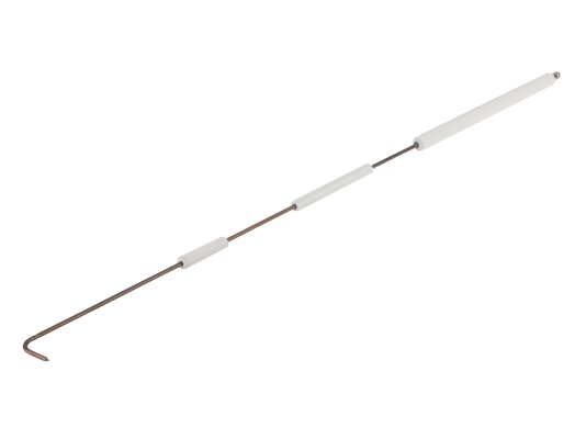 The Riello 555 mm ignition electrode, art.: 3012018, is designed to equip the ignition unit of the Riello industrial gas burner. High voltage generated by the ignition transformer is supplied to the electrode via the ignition cable, which produces a powerful spark discharge. Ceramic insulation consisting of 3 parts was used in the manufacture of the electrode.