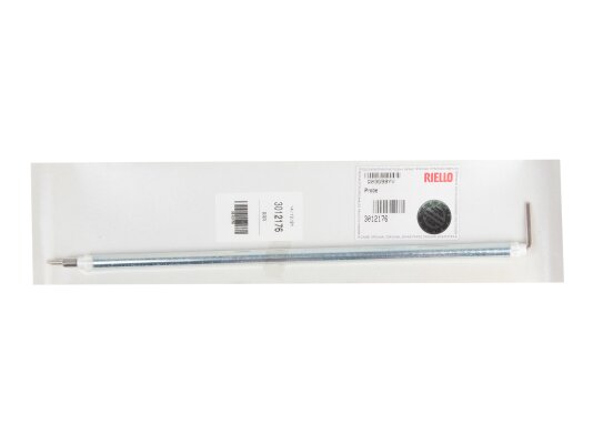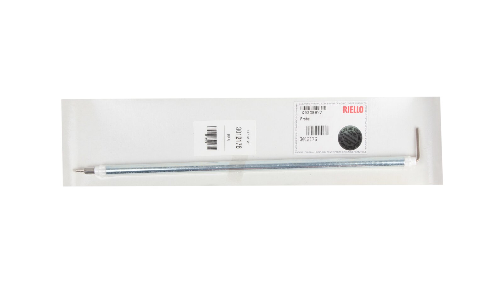 Flame control is carried out to ensure safe operation of gas equipment. Riello ionization electrode 418 mm, article: 3012176, which can be purchased here, is installed on the Riello gas burner. It consists of a ceramic body, an ignition rod. The electrode is connected to the burner automation, and sends appropriate signals about the presence / absence of flame. The combustion manager controls the gas supply, depending on the number of charged electrons and ions.