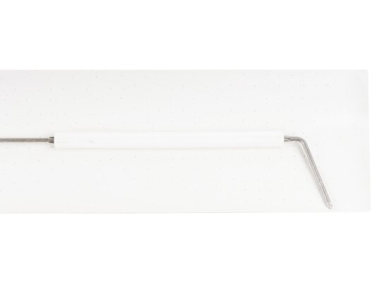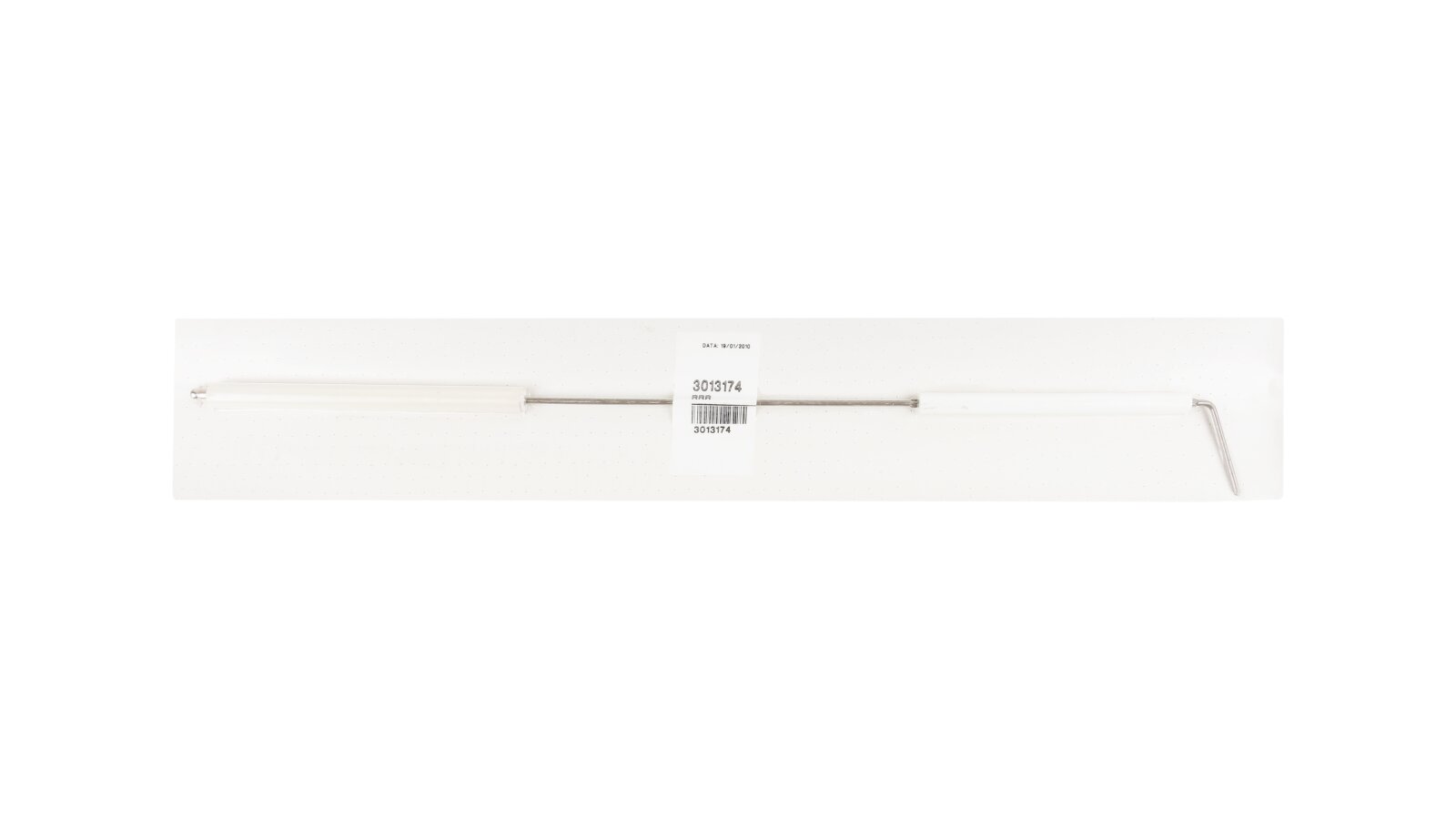 The Riello 541 mm ignition electrode, art.: 3013174, ensures effective ignition of the fuel-air mixture by spark discharge. The ignition spark is formed when high voltage is supplied from the transformer.