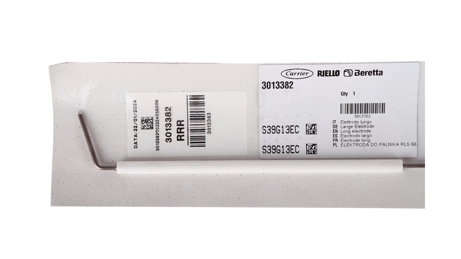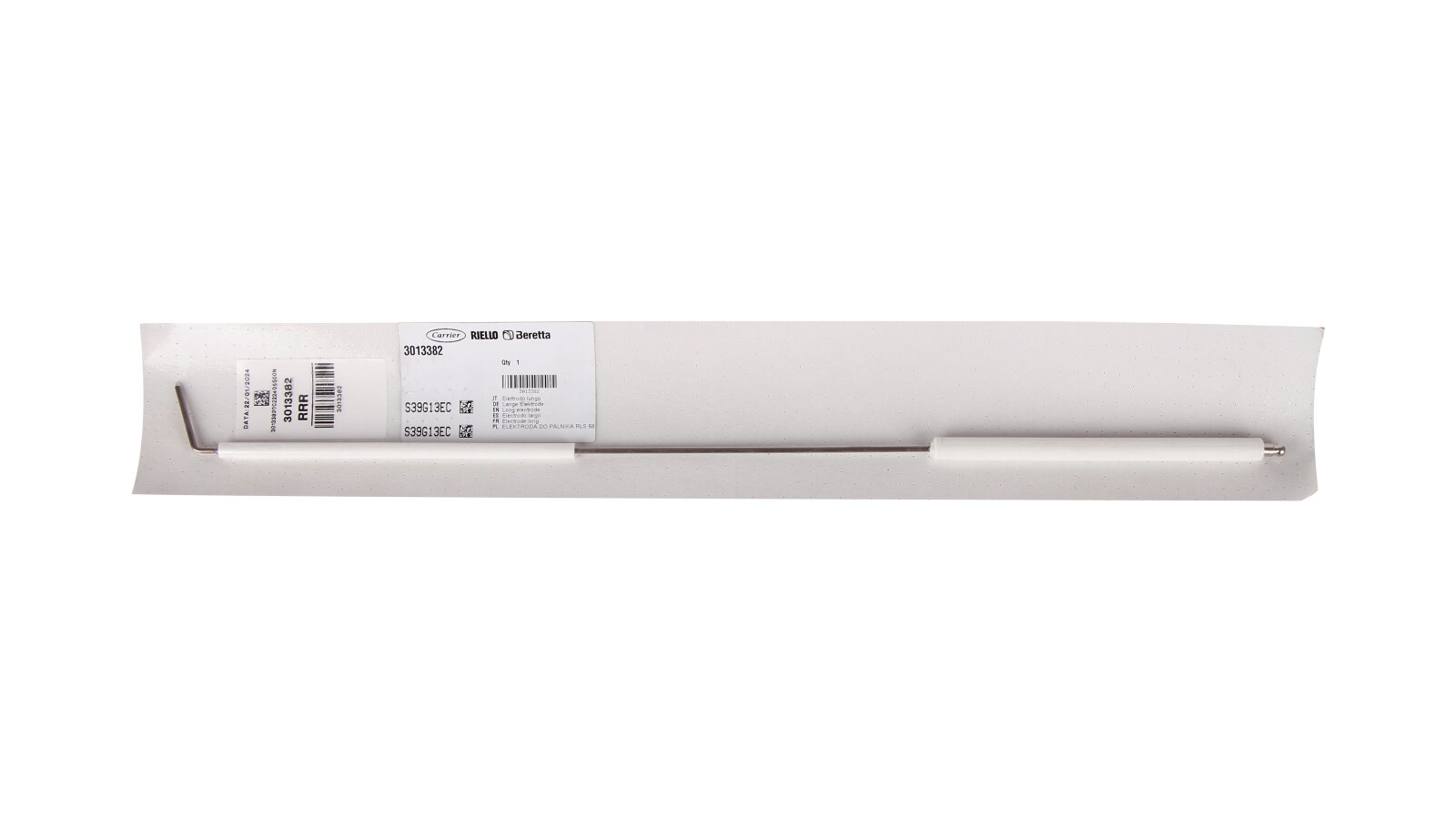 Manufacturer Part Number: 3013382Electrode length: 580 mmElectrode type: ignitionMovable insulation size: Ø8 X 180 mmFixed insulation size: Ø12 x 170 mmRod size: Ø3 X 30 mm