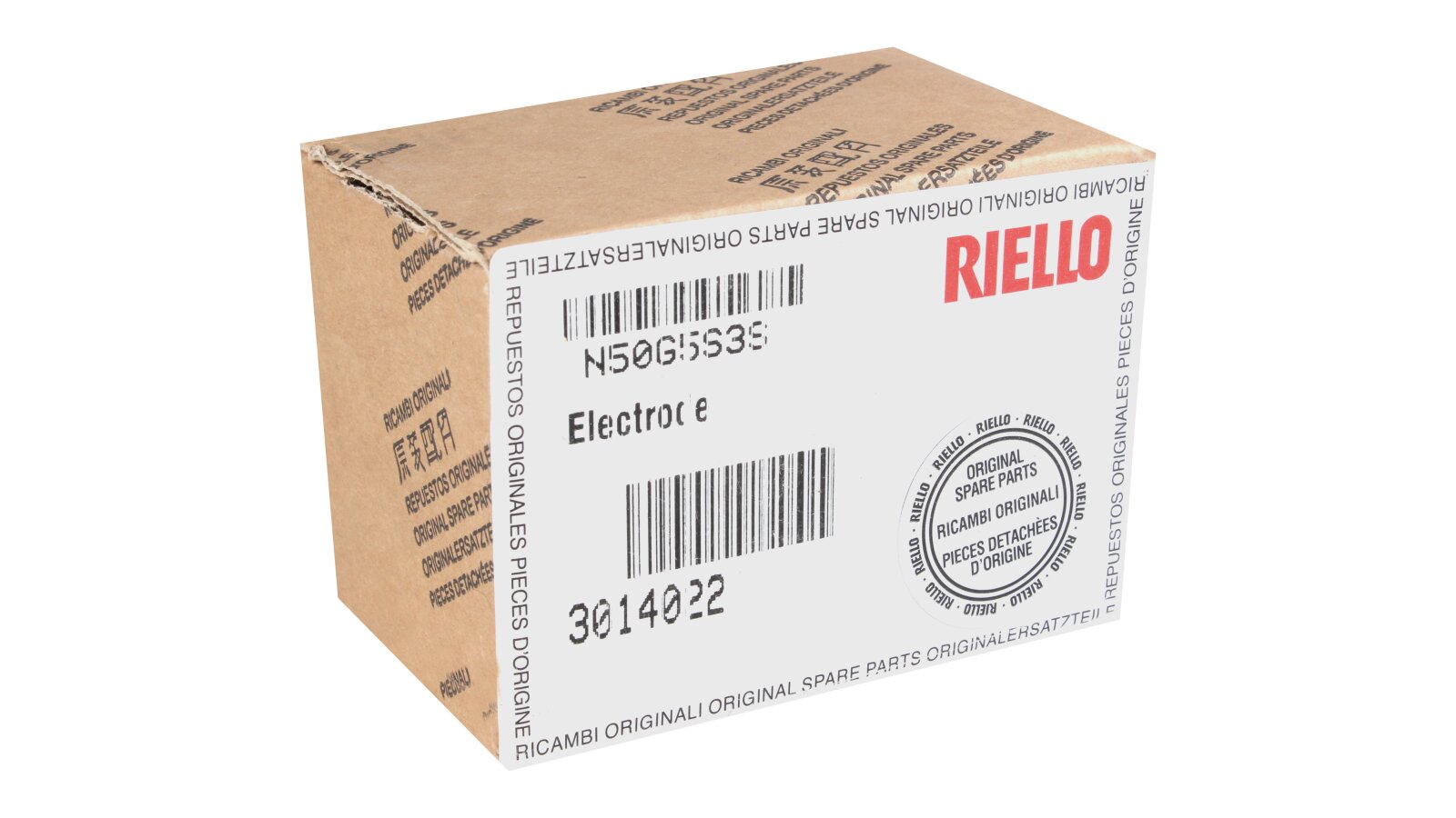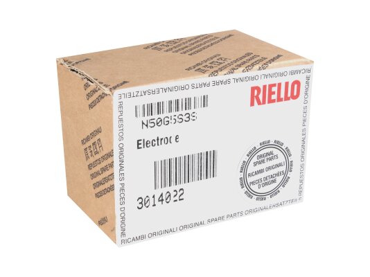 The Riello ignition electrode, art. 3014022, ignites the fuel-air mixture with a powerful electric spark. It is connected to an ignition transformer that generates high-voltage current. Reliable heat and electrical insulation guarantee safe operation of the electrode.