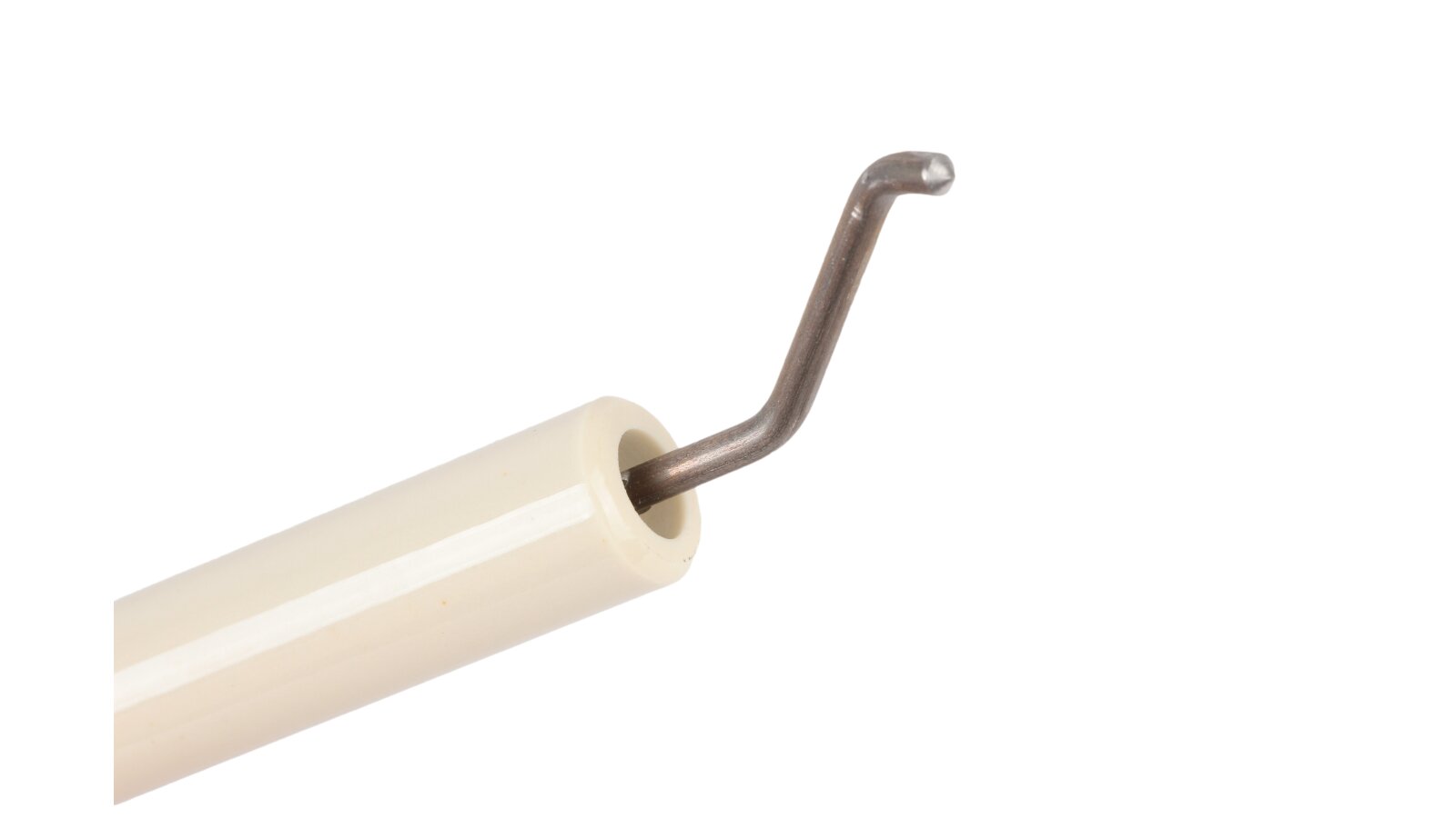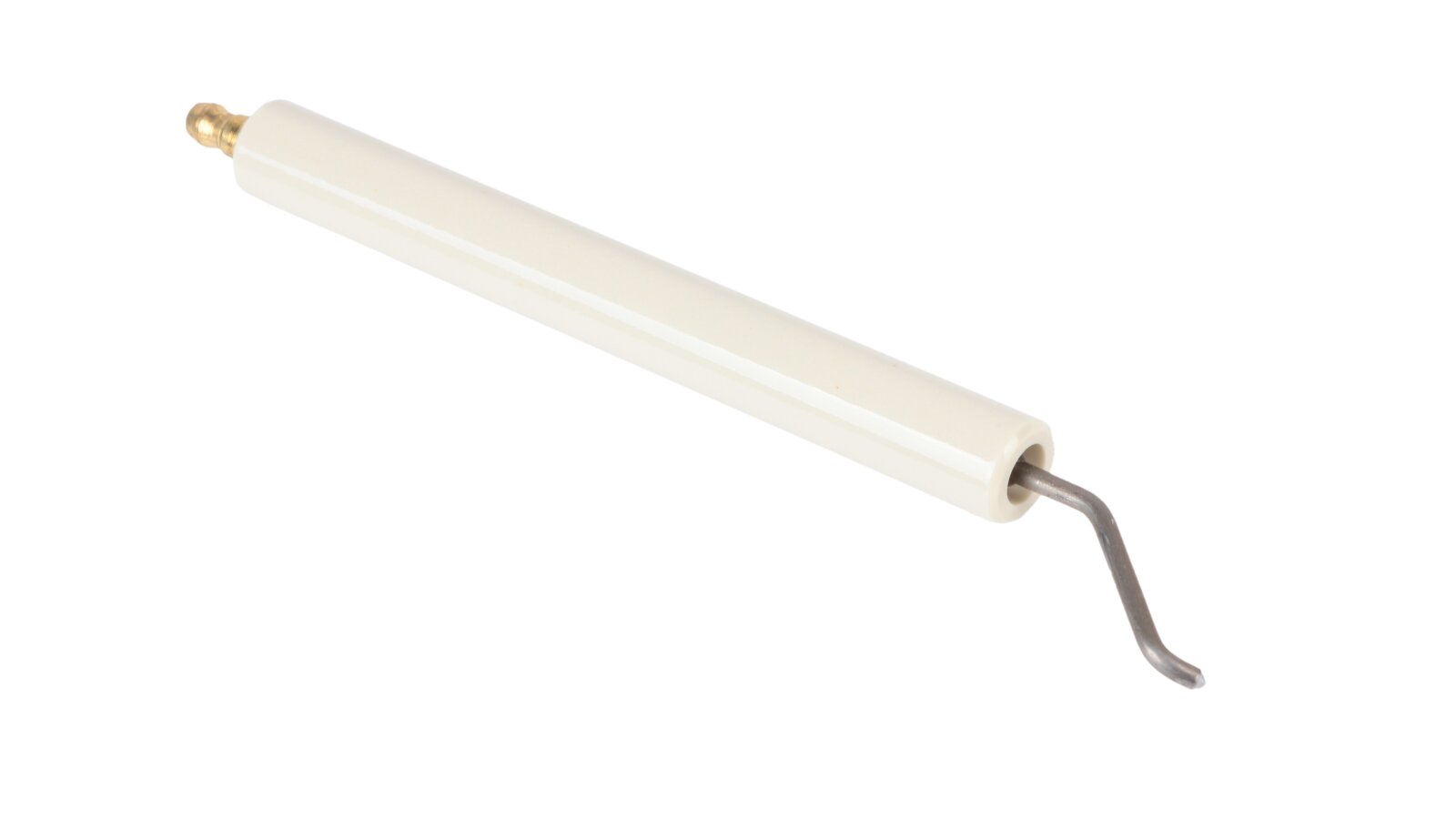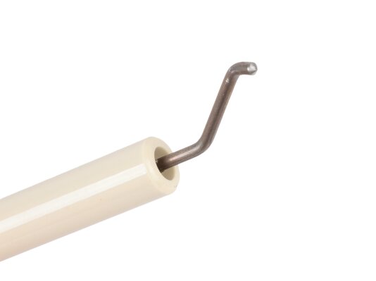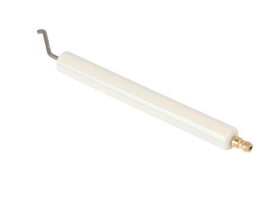 To assemble the ignition unit of the heating burner, use the ignition electrode 170 mm left article 11179410047. Together with the right electrode, it forms a high-voltage arc, which ignites the fuel mixture when the burner is turned on. To supply high-voltage current generated by the transformer, the ignition cable is connected to the electrode. The plug-type connection ensures reliable and stable contact. The plug diameter is Ø6 mm. The conductive rod is protected by fixed insulation Ø14x125 mm made of ceramics.